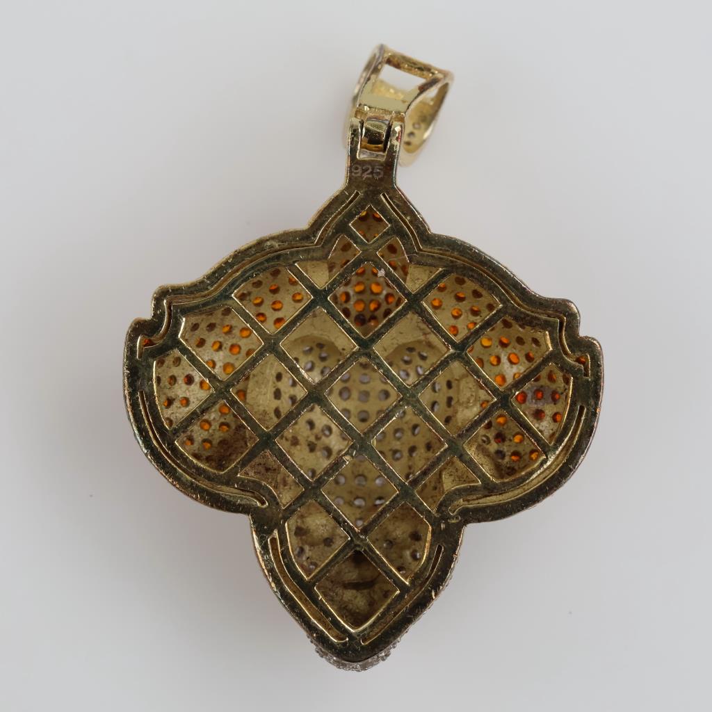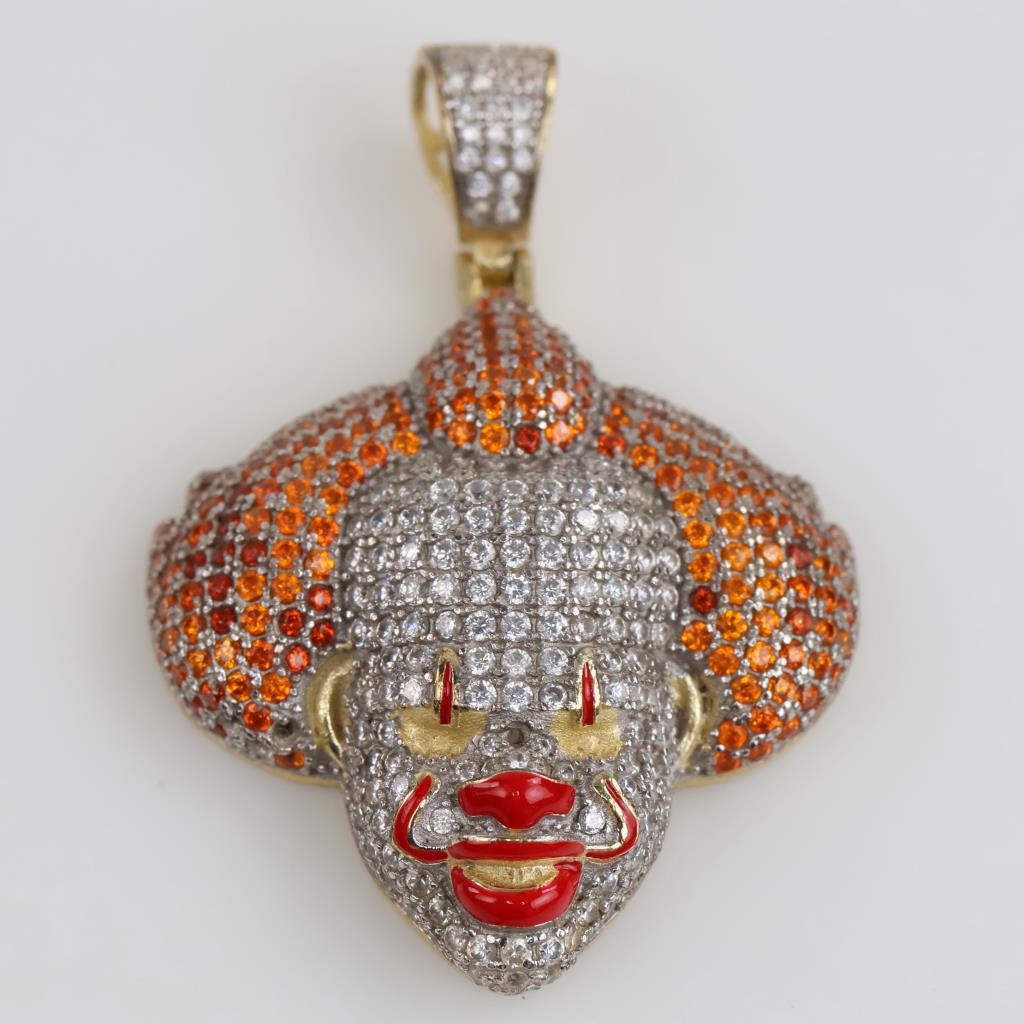 Sterling Silver Clear Stone Orange Stone Encrusted Red Enamel Accent Hollow Pennywise Pendant