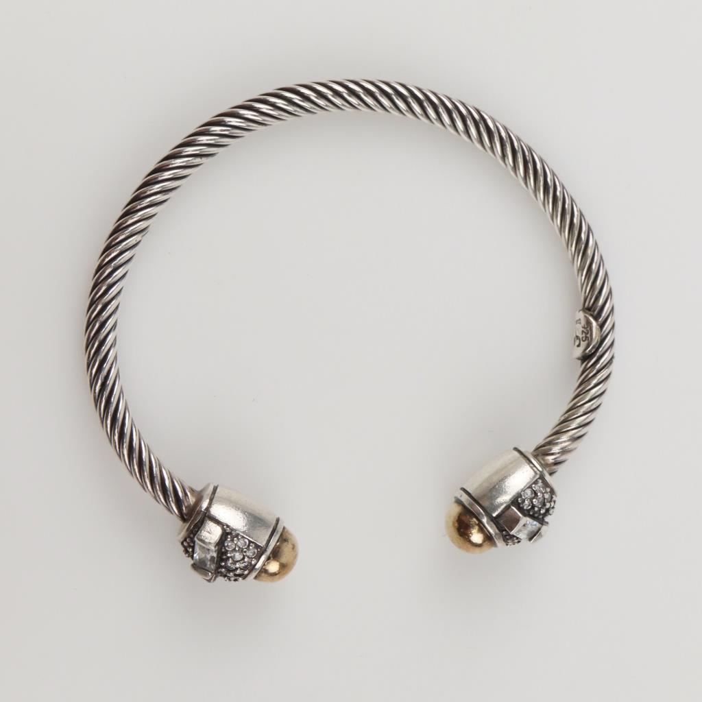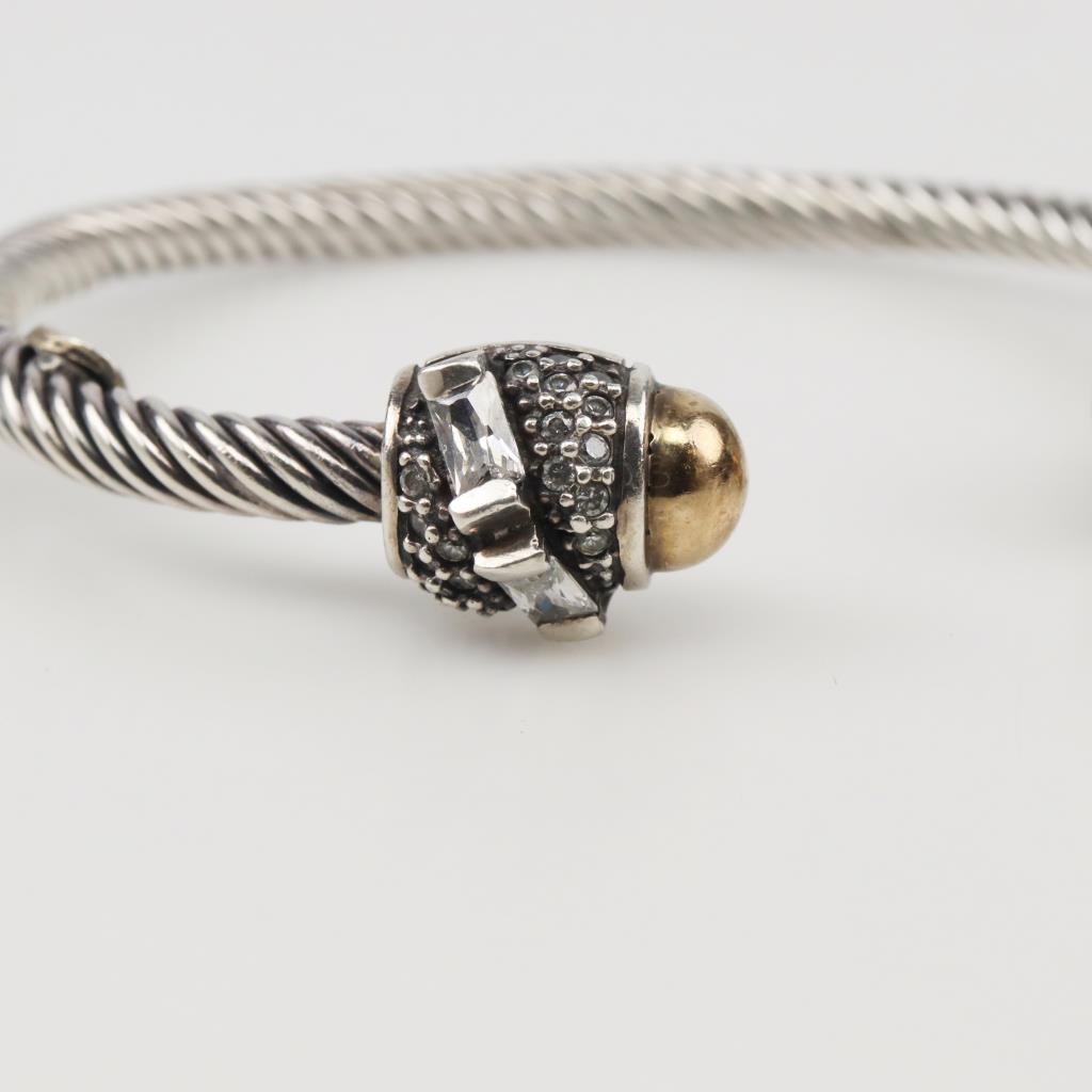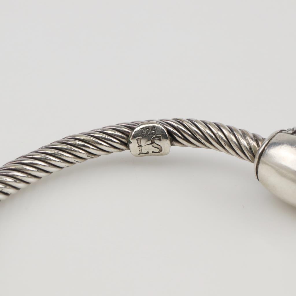 Sterling Silver Clear Stone Twisted Cable Cuff Bracelet