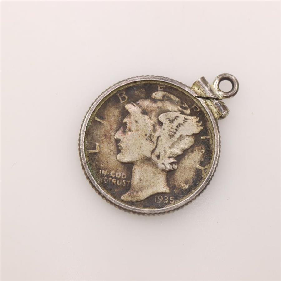 Sterling Silver Coin Holder With Mercury Silver Dime Pendant