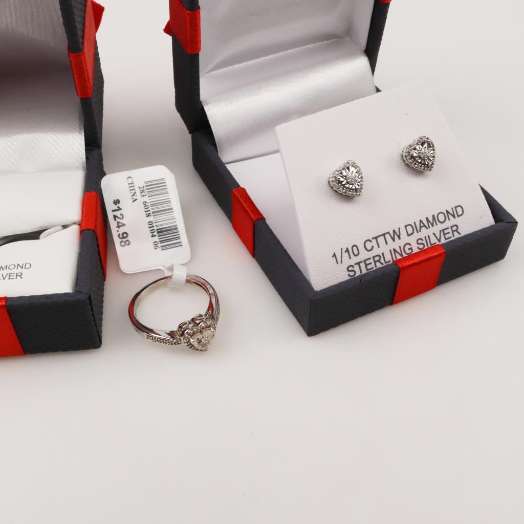 Sterling Silver Diamond Jewelry, 3 Pieces