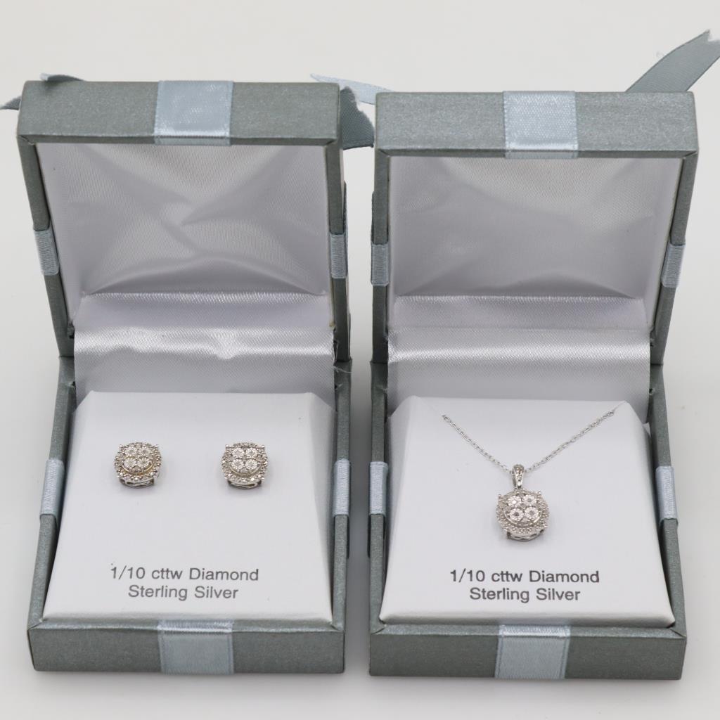 Sterling Silver Diamond Jewelry, 4 Pieces