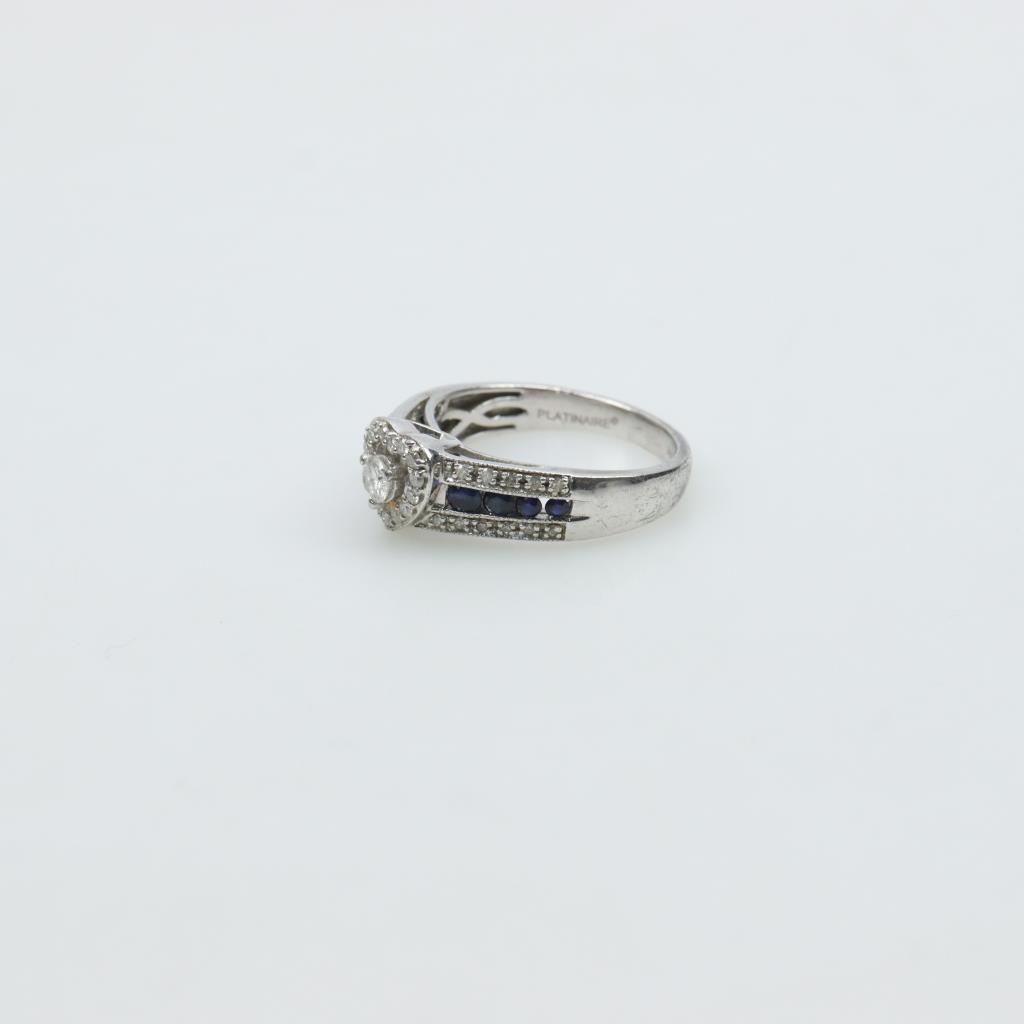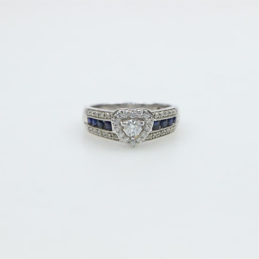 Sterling Silver Diamond Sapphire Heart Ring