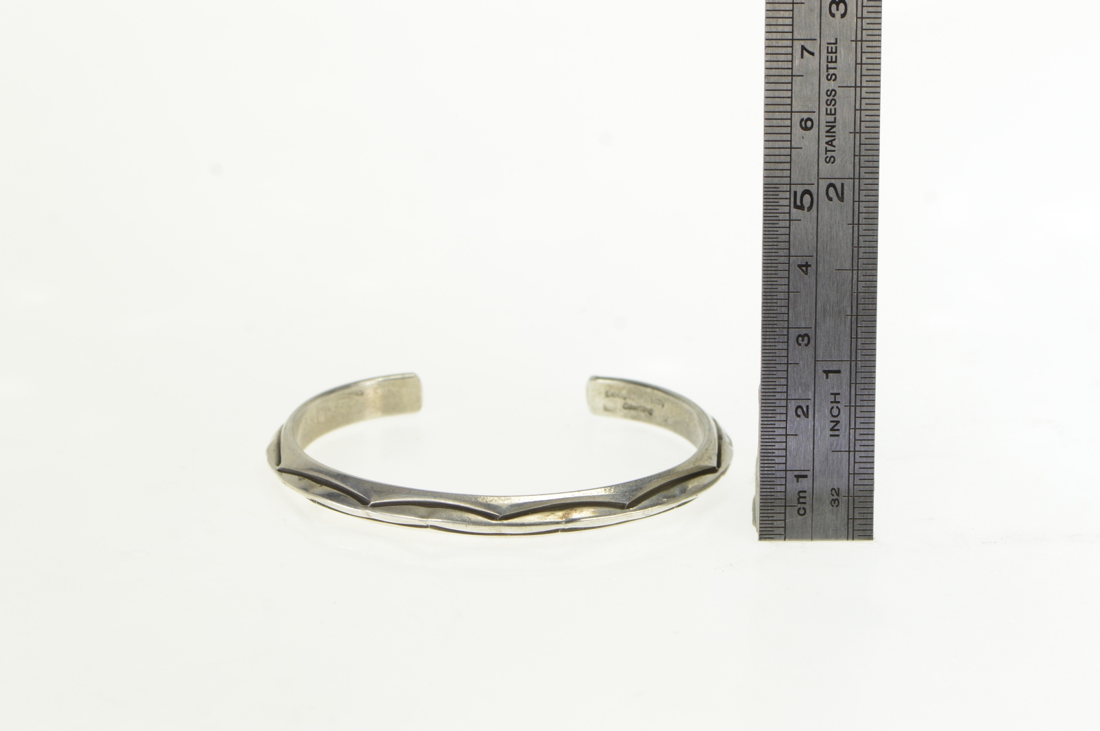Item:  Sterling Silver Douglas Etsitty Navajo Stamped Cuff Bracelet 6.5"