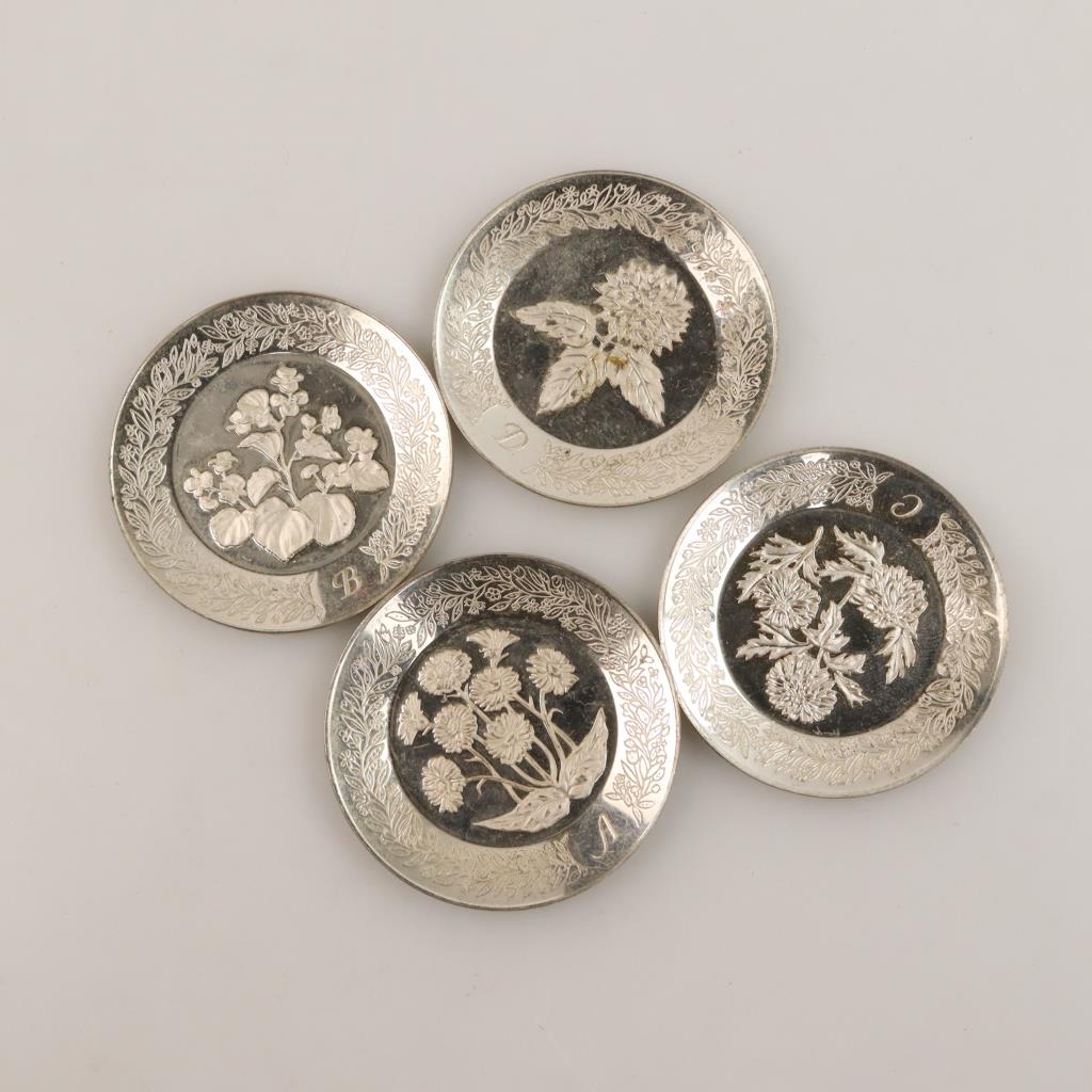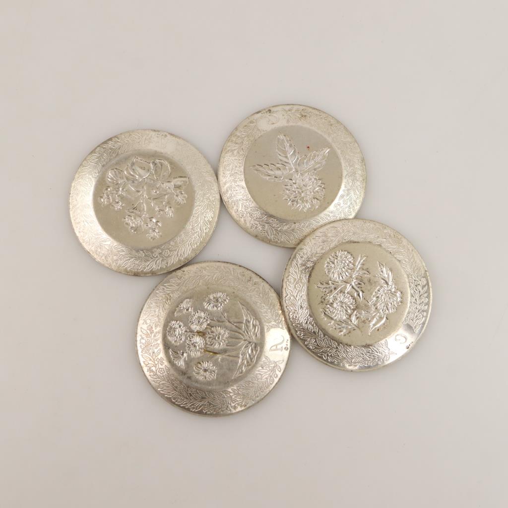 Sterling Silver Engraved Miniature Plates, 4 Pieces