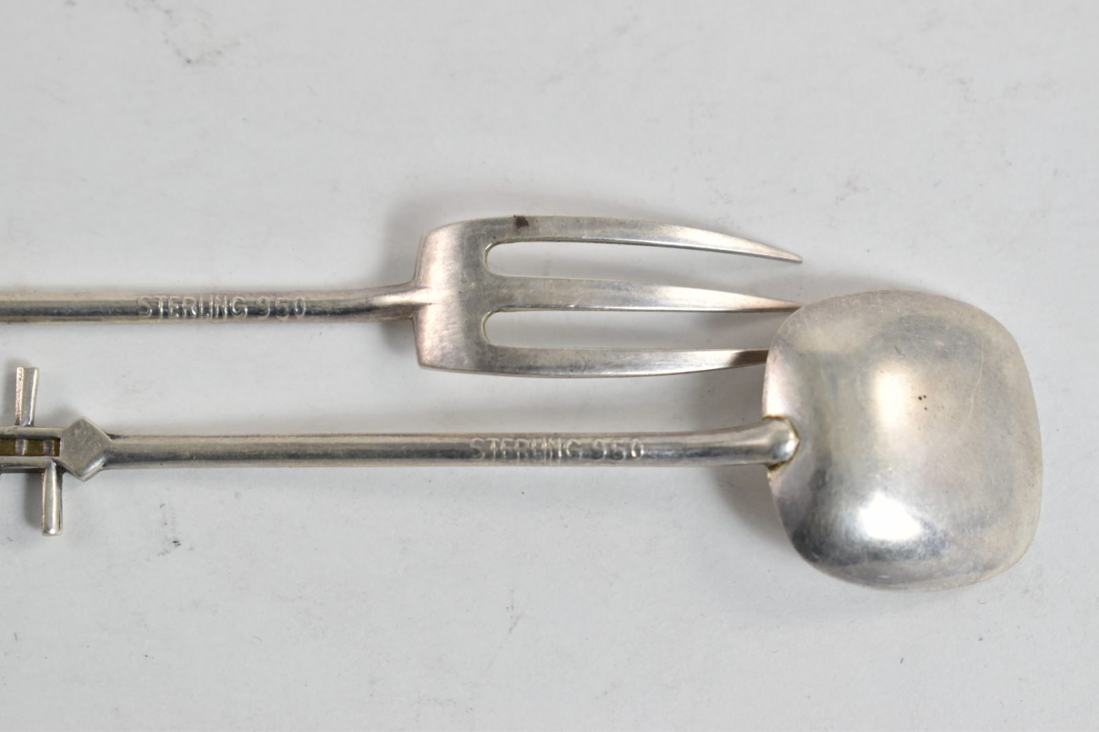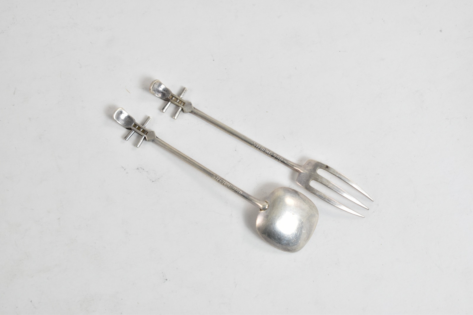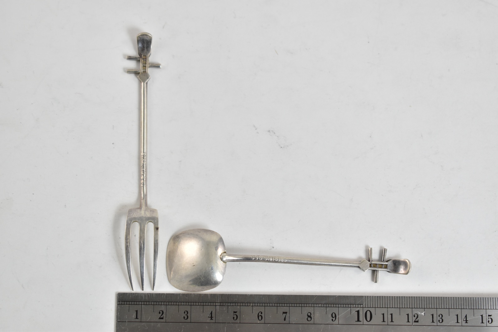 Item:  Sterling Silver Erhu Instrument Dessert Spoon & Fork Set (2 pcs)