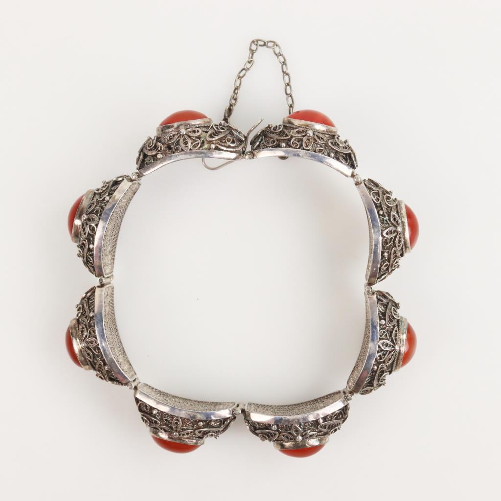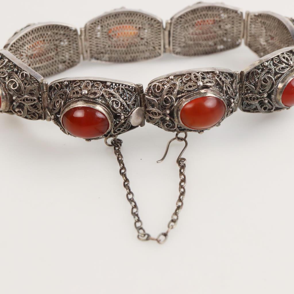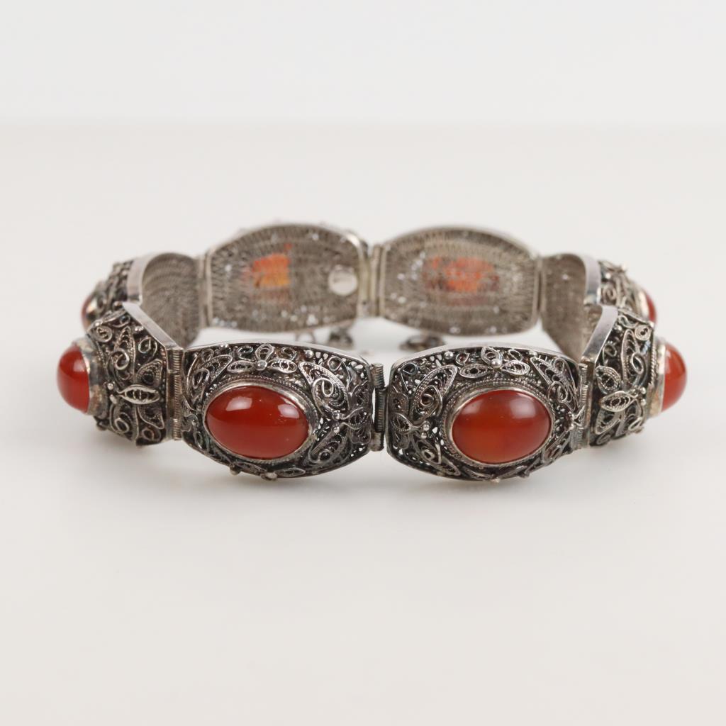 Sterling Silver Filigree Panel Red Stone Bracelet