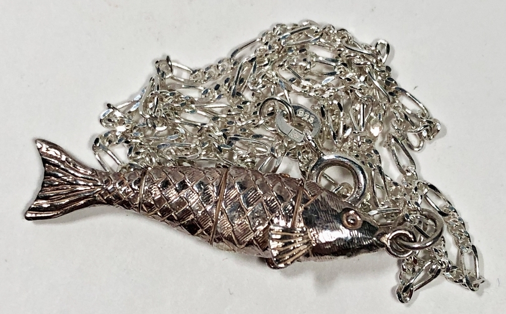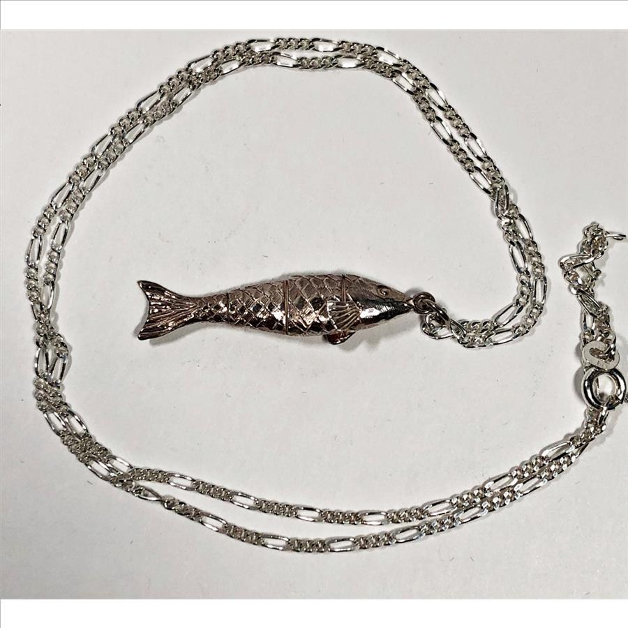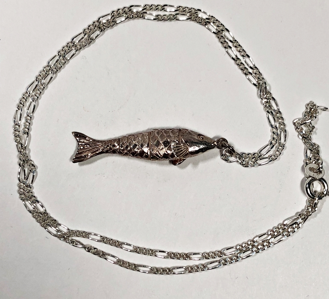Sterling Silver Fish Pendant and Chain*Fish "wriggles"*7.5 Grams Total Weight