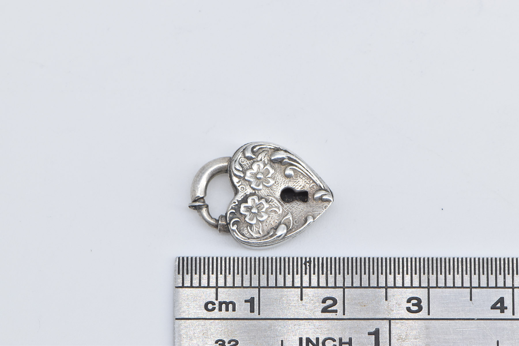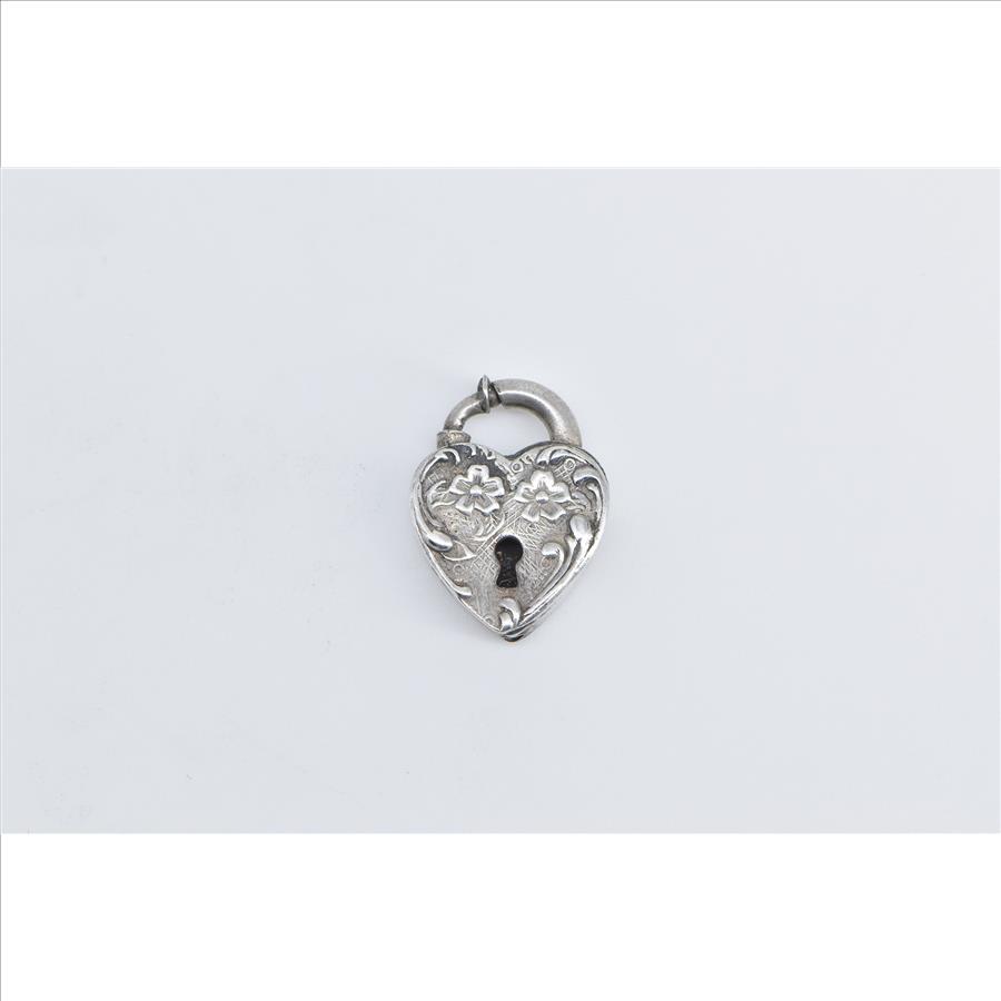 Item:  Sterling Silver Heart Puffy Locket Forget Me Not Clip Love Charm/Pendant