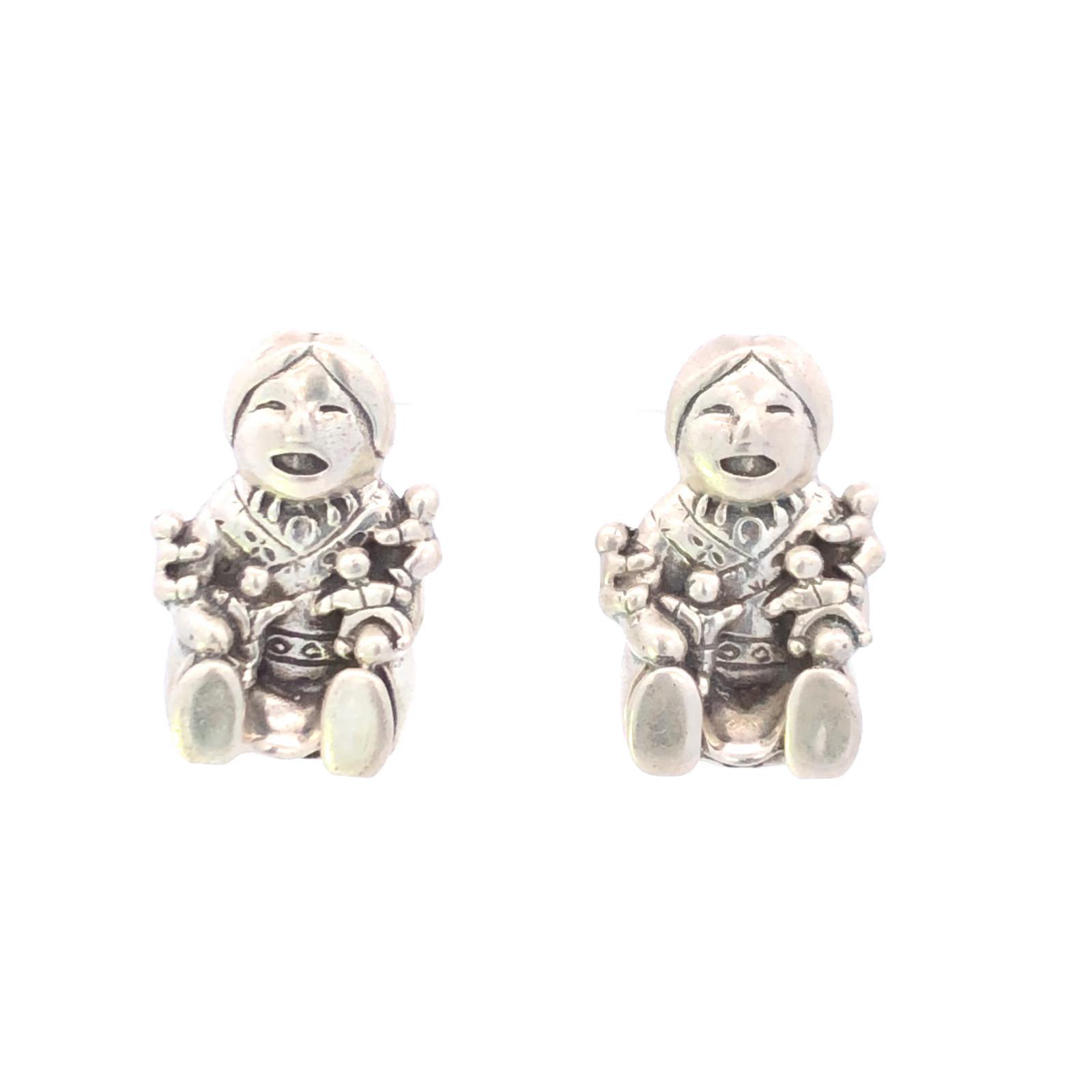 Item:  Sterling Silver Kachina Doll Native American Clip Back Earrings