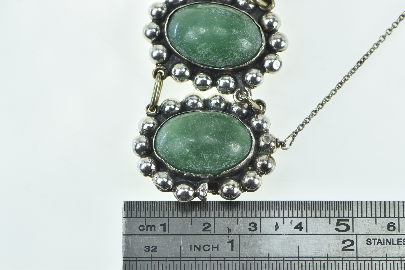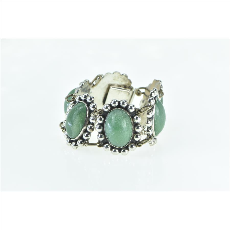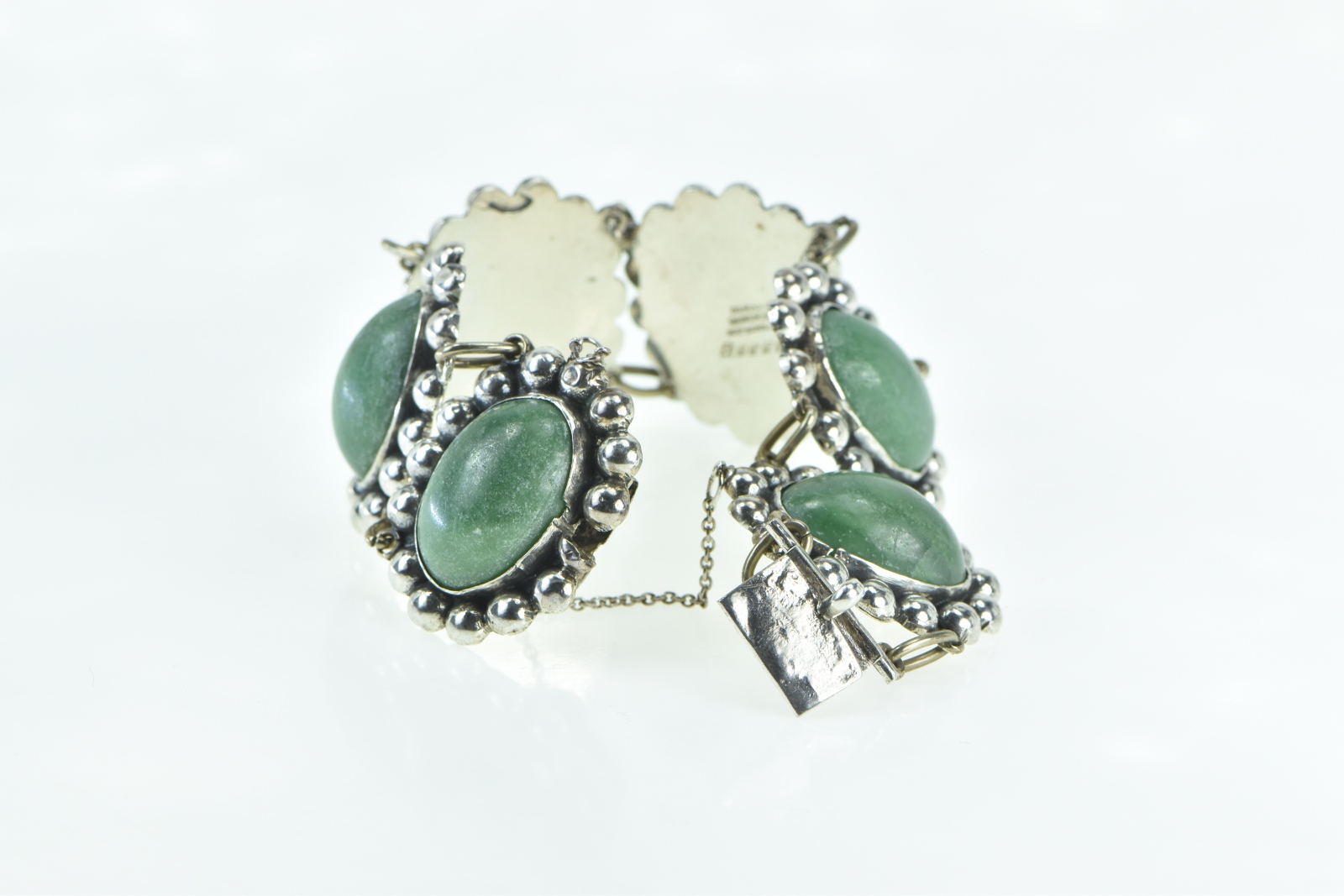 Sterling Silver Lapidario Barrera Green Agate Oval Mexico Bracelet 6.75"