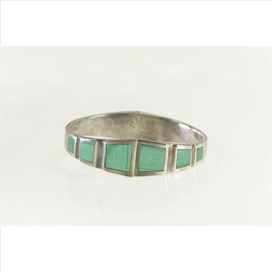 Item:  Sterling Silver Malachite Inlay Ornate Oval Bangle Bracelet 7.25"