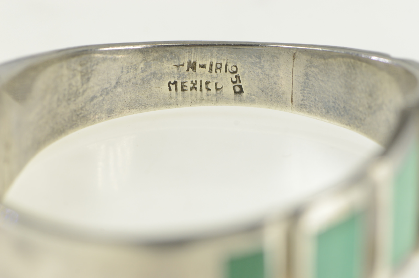 Sterling Silver Malachite Inlay Ornate Oval Bangle Bracelet 7.25"
