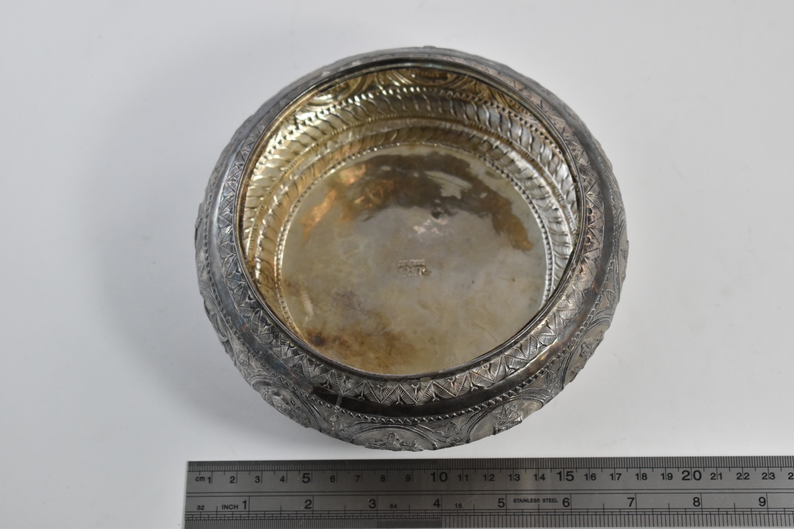 Item:  Sterling Silver Malaysian Ornate Provincial Repousse Bowl