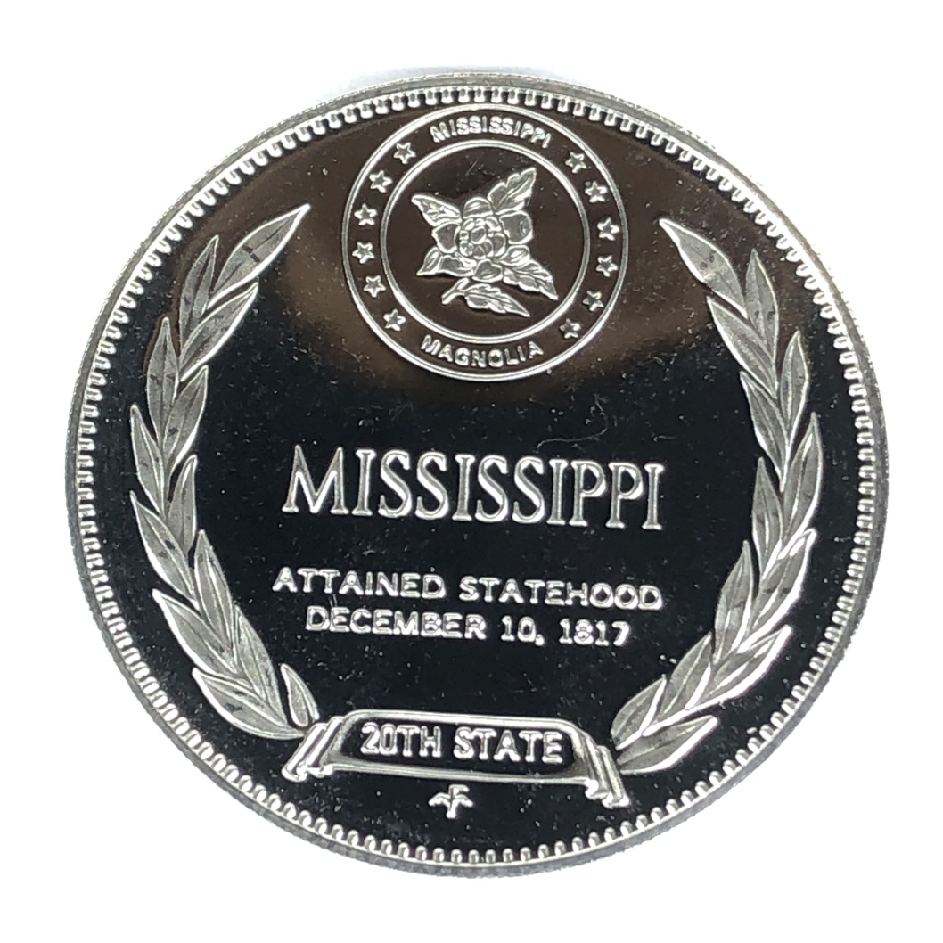 Sterling Silver Mississippi Commemorative Medallion*The Magnolia State*13.5 Garms .925 Silver*Franklin Mint