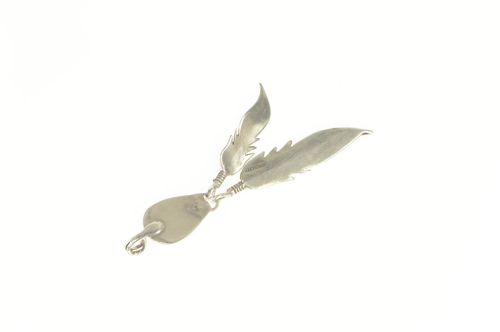 Item:  Sterling Silver Native American Bear Claw Turquoise Feather Pendant