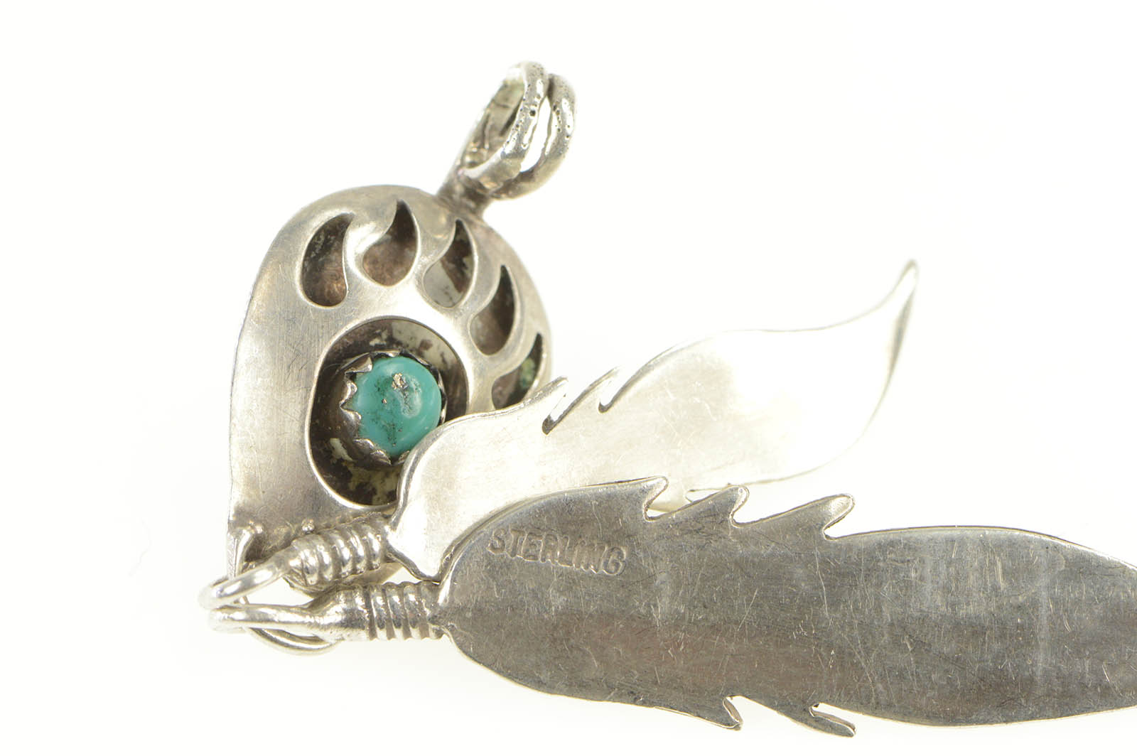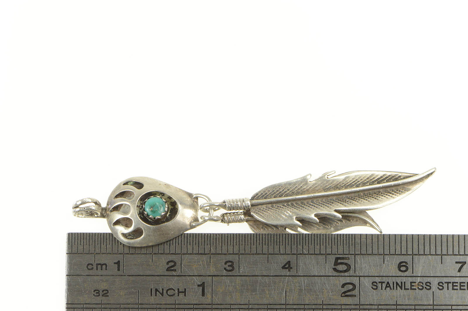 Sterling Silver Native American Bear Claw Turquoise Feather Pendant