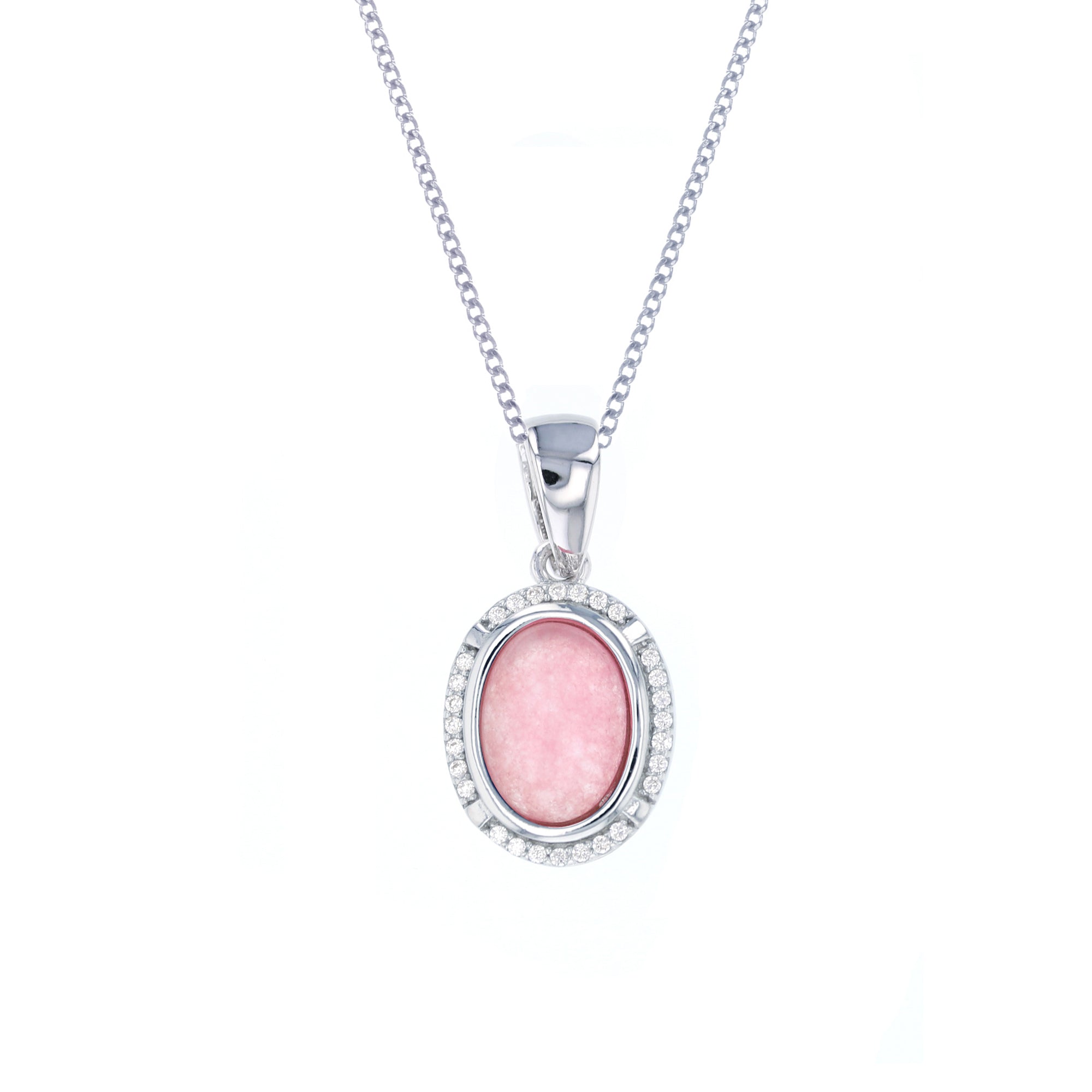 Sterling Silver Natural Rose Stone CZ Necklace
