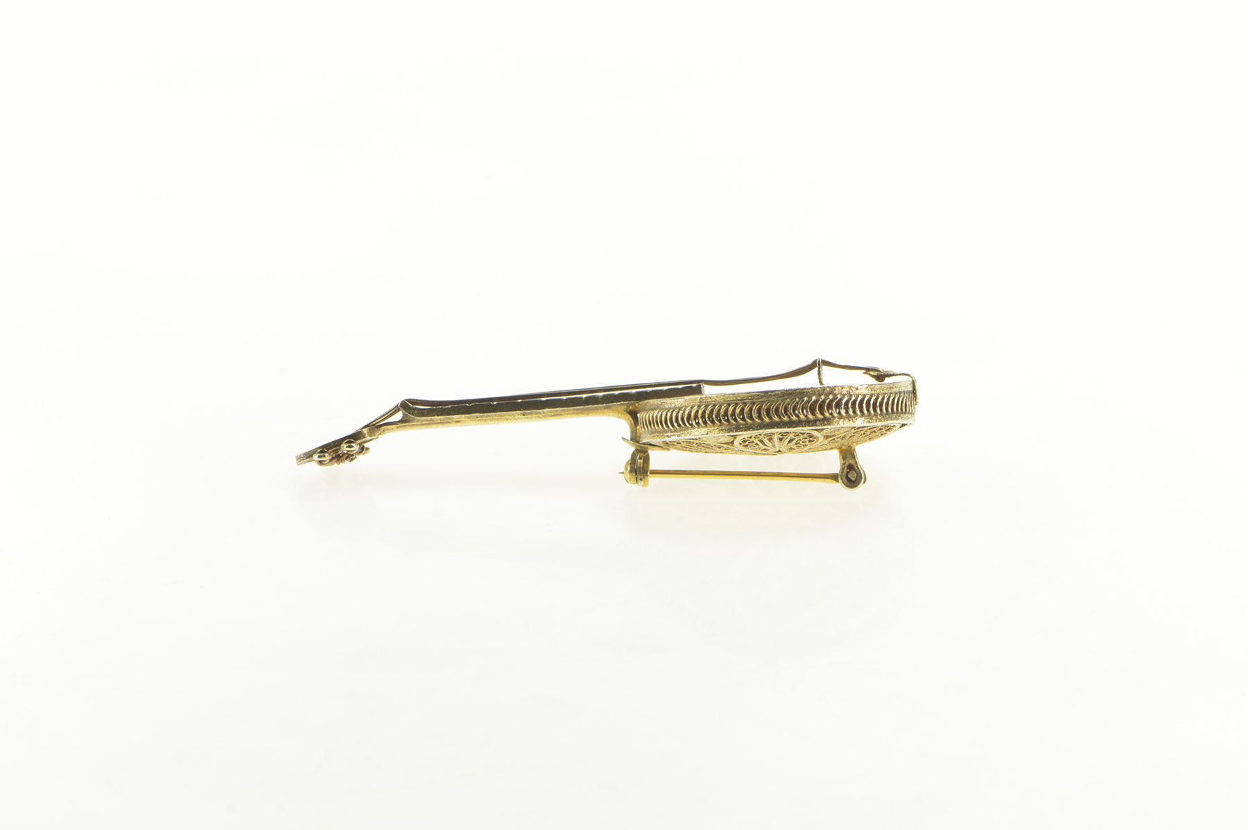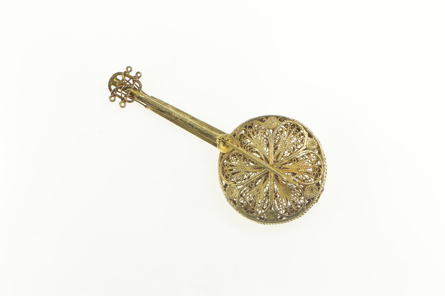 Item:  Sterling Silver Ornate Filigree Domra Russian String Instrument Pin/Brooch