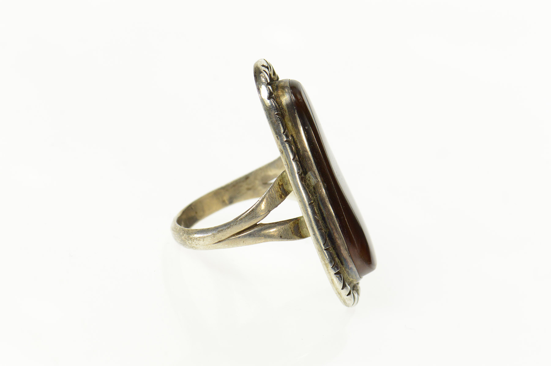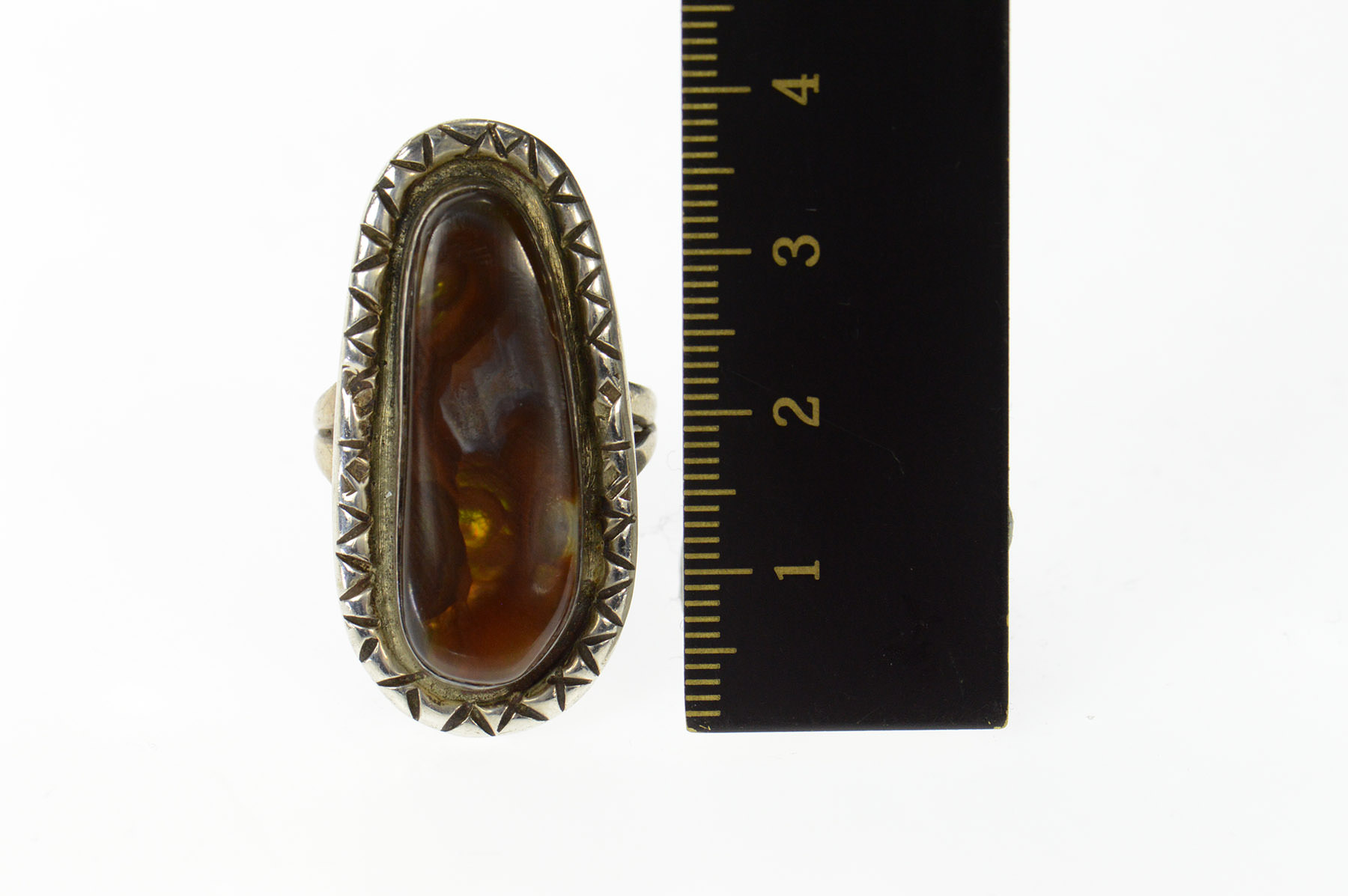 Item:  Sterling Silver Ornate Native American Fire Agate Navajo Ring, Size 9