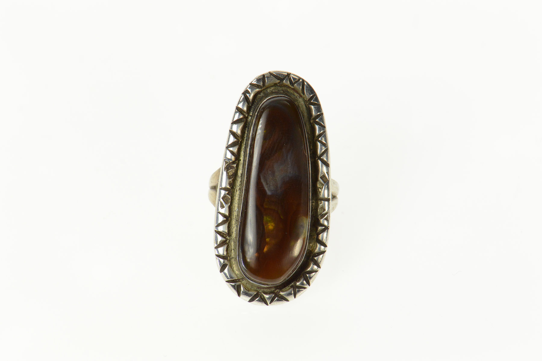 Sterling Silver Ornate Native American Fire Agate Navajo Ring, Size 9