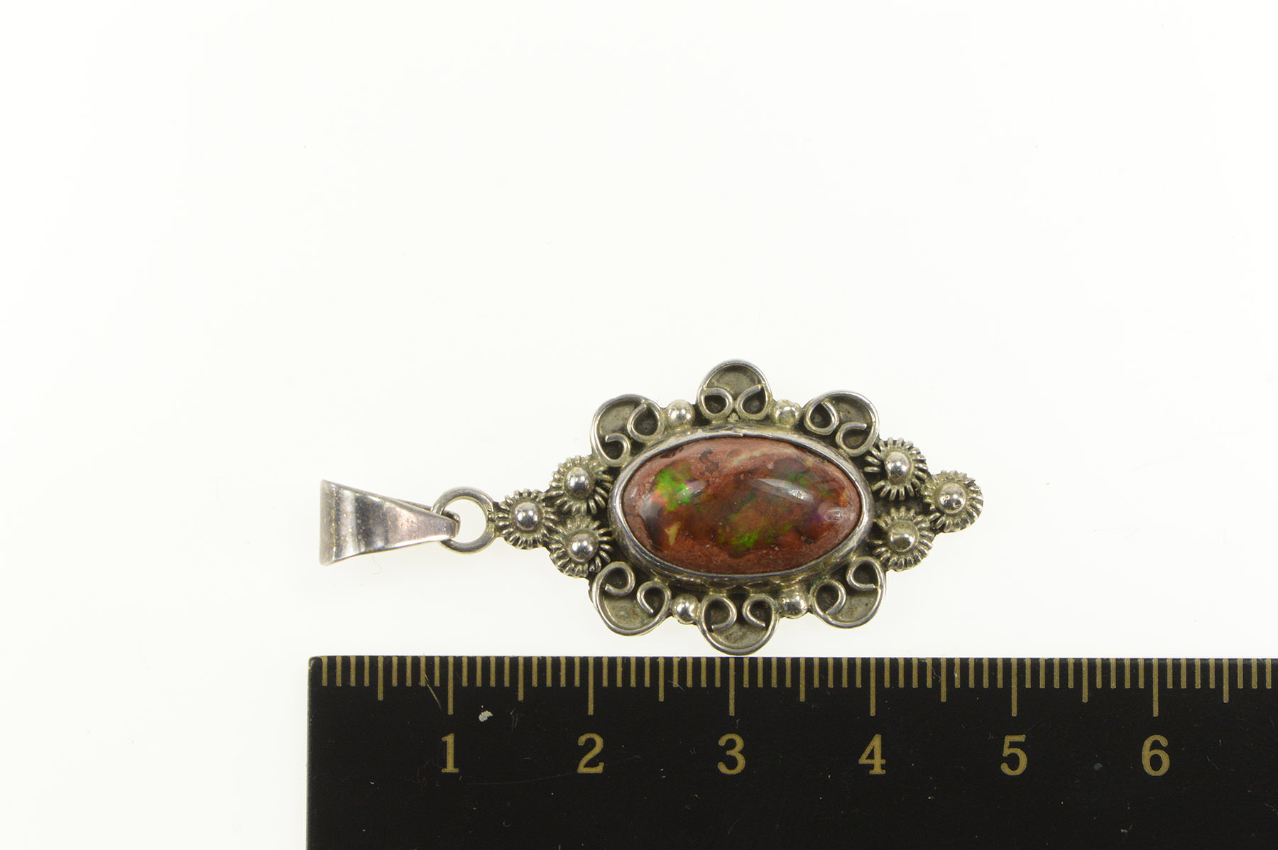Item:  Sterling Silver Oval Cantera Opal Cabochon Ornate Statement Pendant