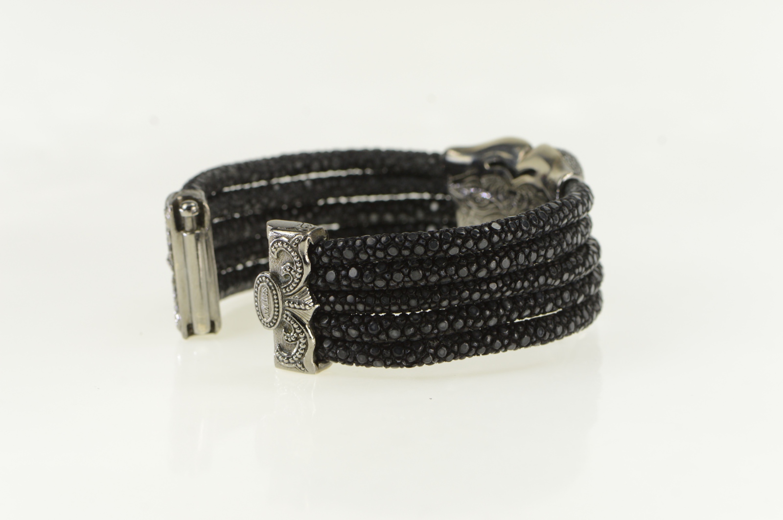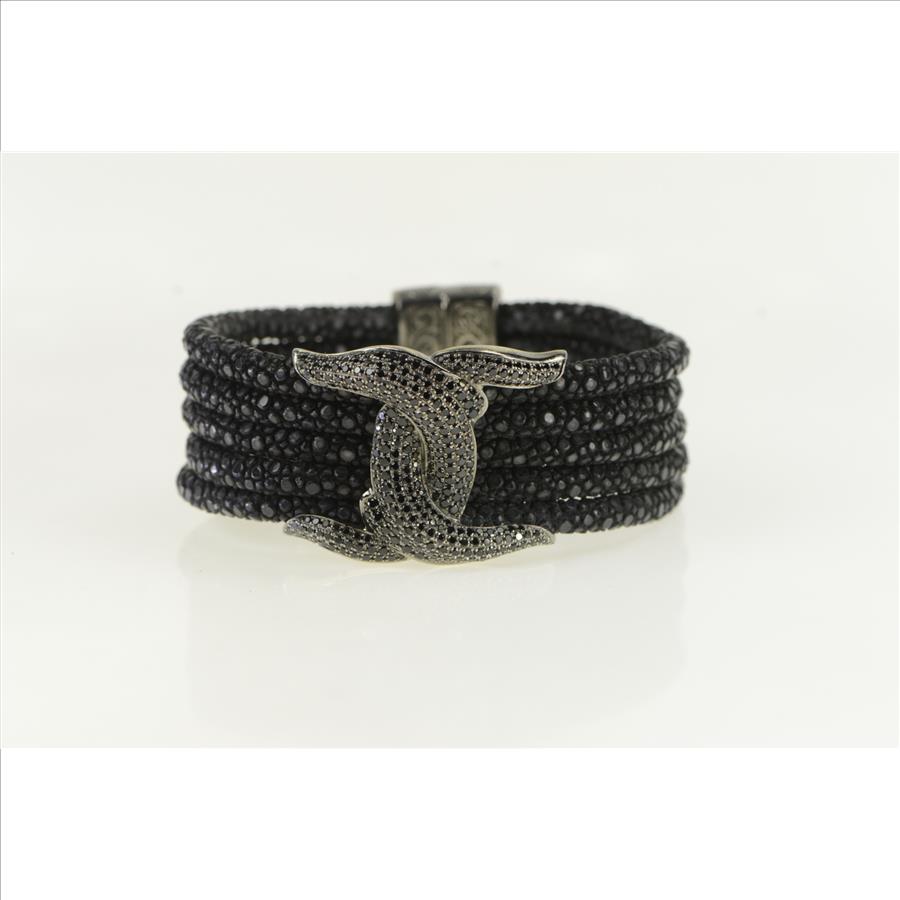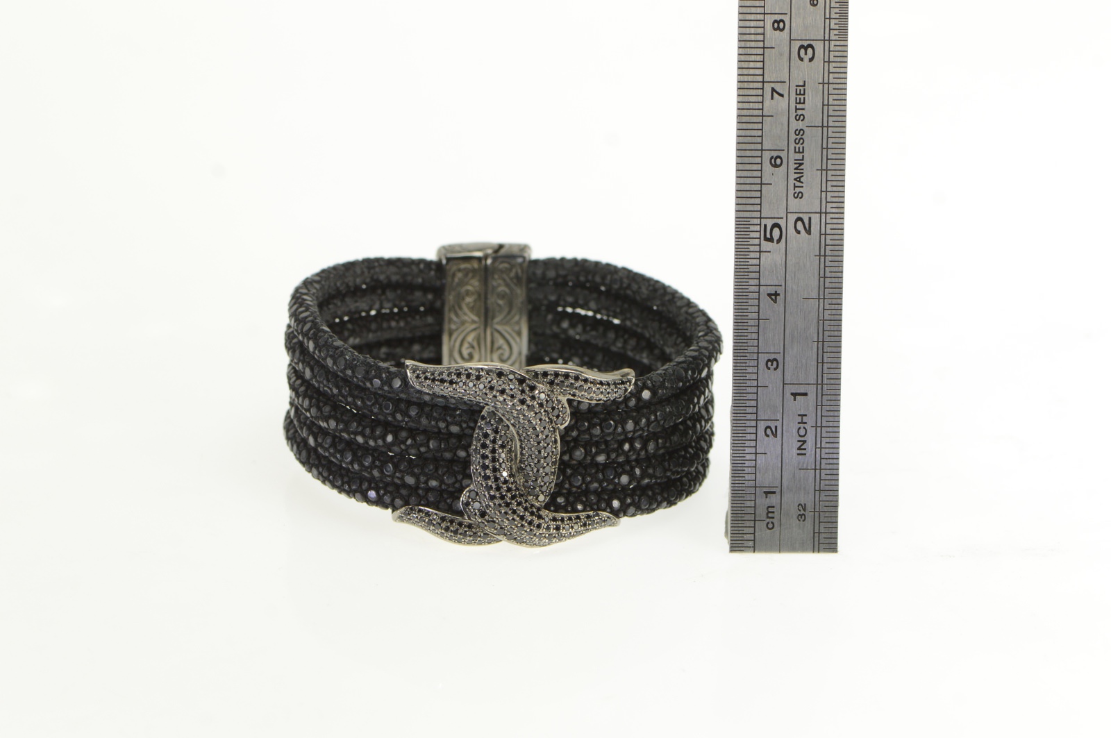 Item:  Sterling Silver Pave Black Diamond Knot Layered Band Bracelet 6.5"