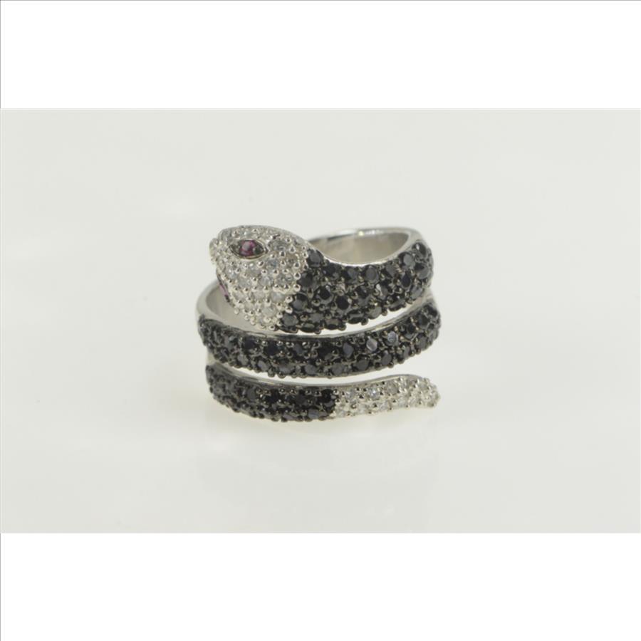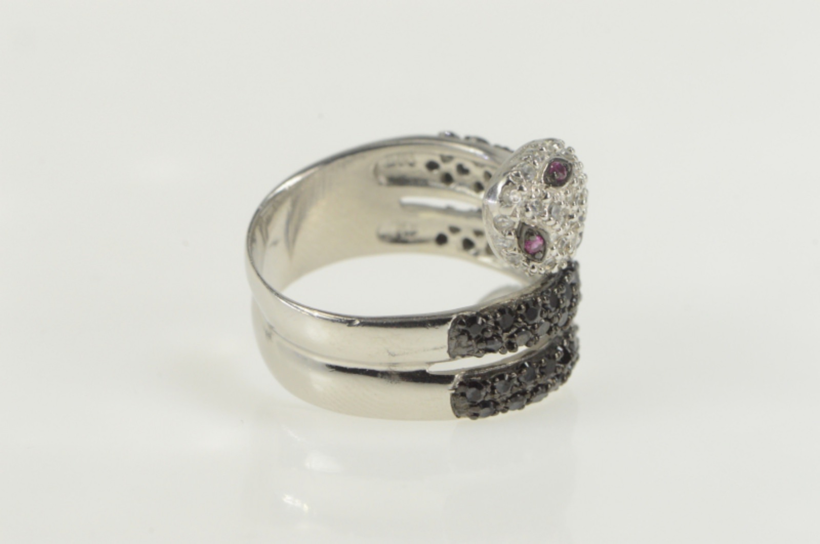 Item:  Sterling Silver Pave Black & White CZ Snake Serpent Snake Ring, Size 8.5