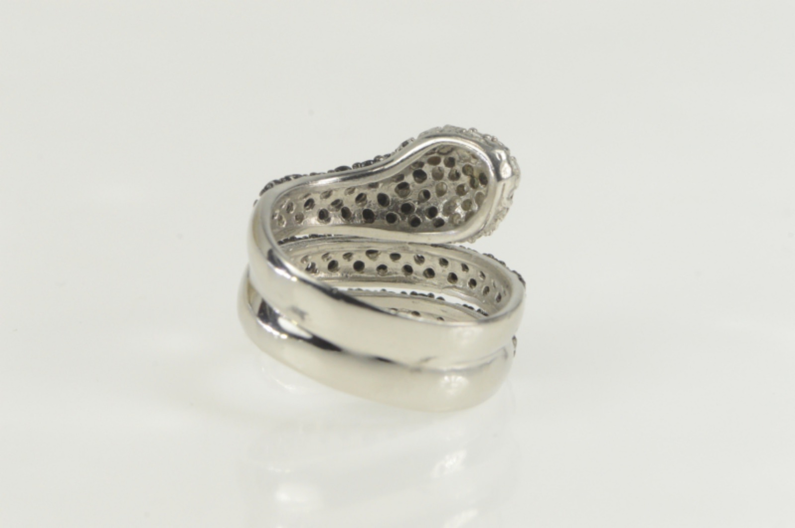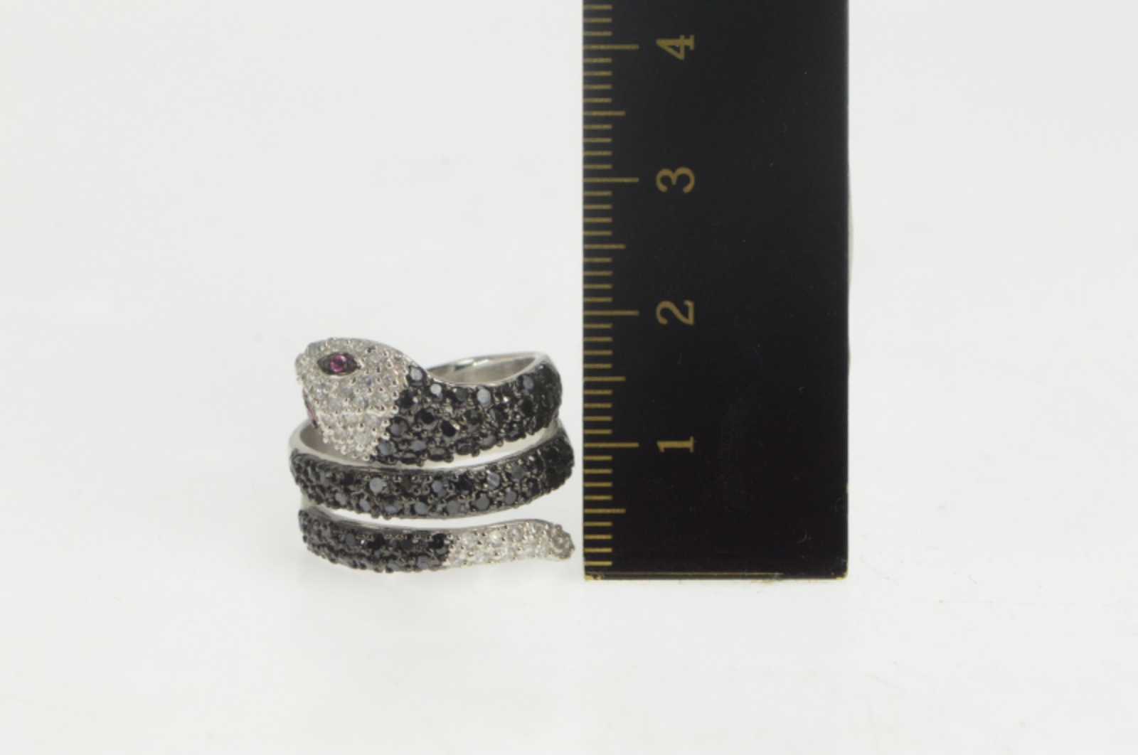 Sterling Silver Pave Black & White CZ Snake Serpent Snake Ring, Size 8.5