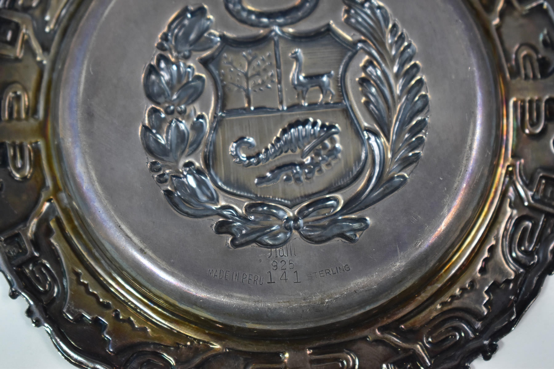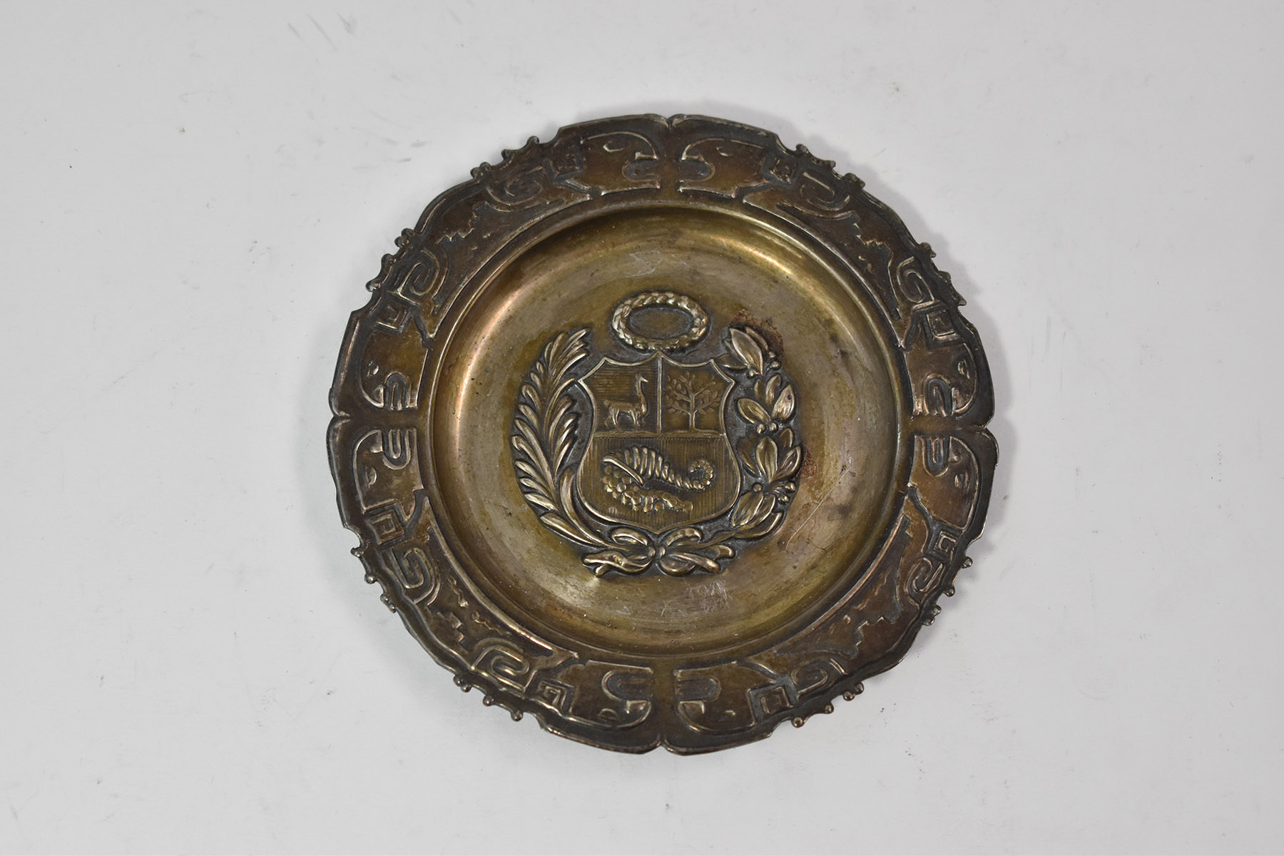 Sterling Silver Peruvian Coat of Arms Ornate Repousse Ash Tray