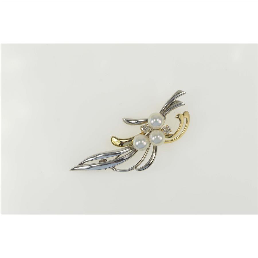 Item:  Sterling Silver Retro Two Tone Pearl Diamond Accent Swirl Pendant/Pin