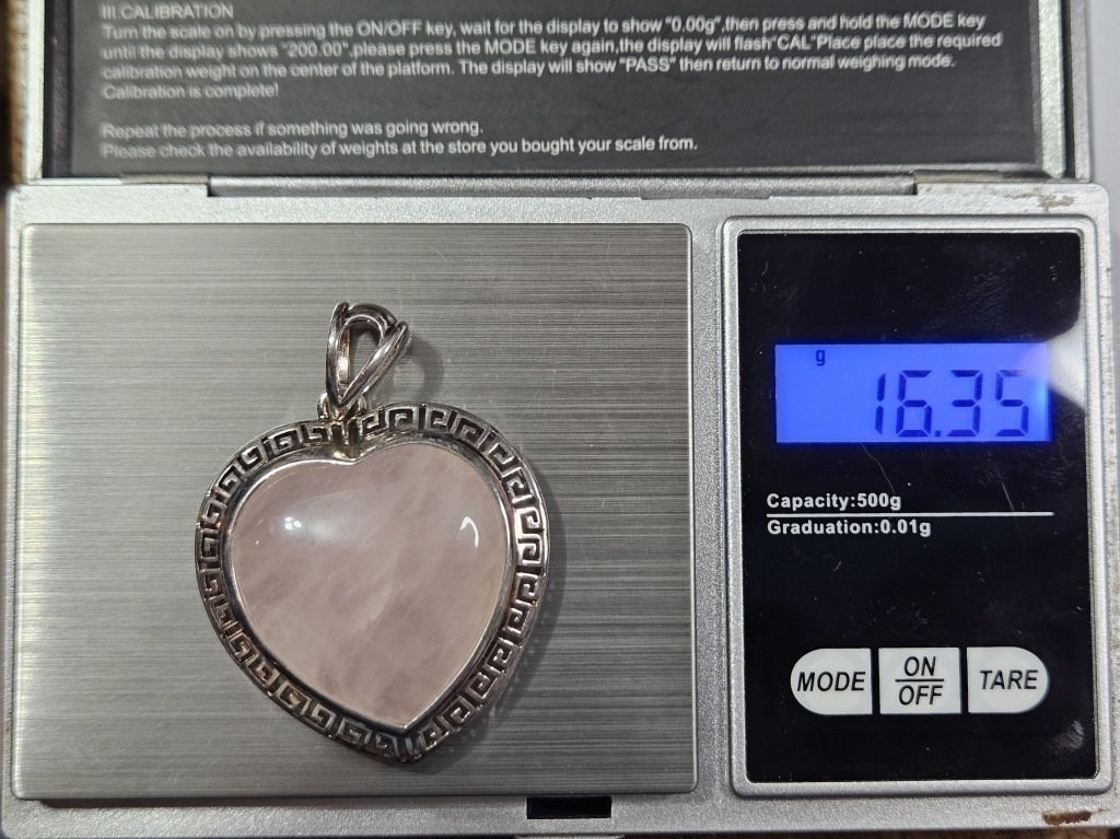Sterling Silver Rose Quartz Heart Shape Pendant