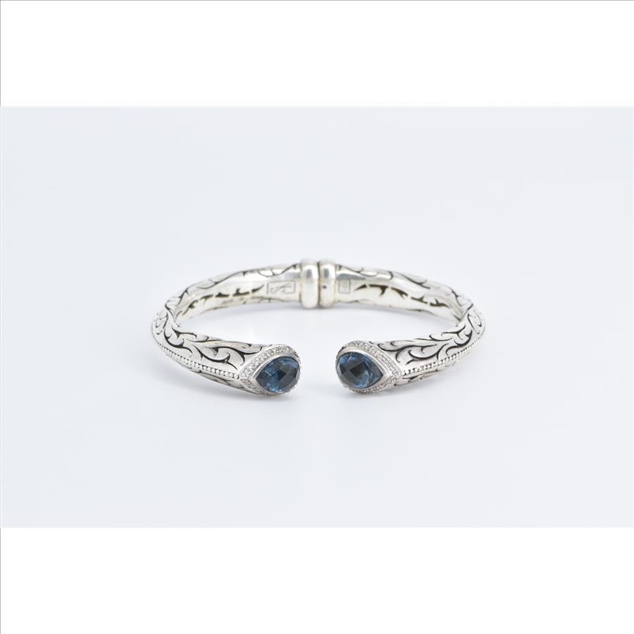 Item:  Sterling Silver Scott Kay London Blue Topaz Diamond Cuff Bracelet 7"