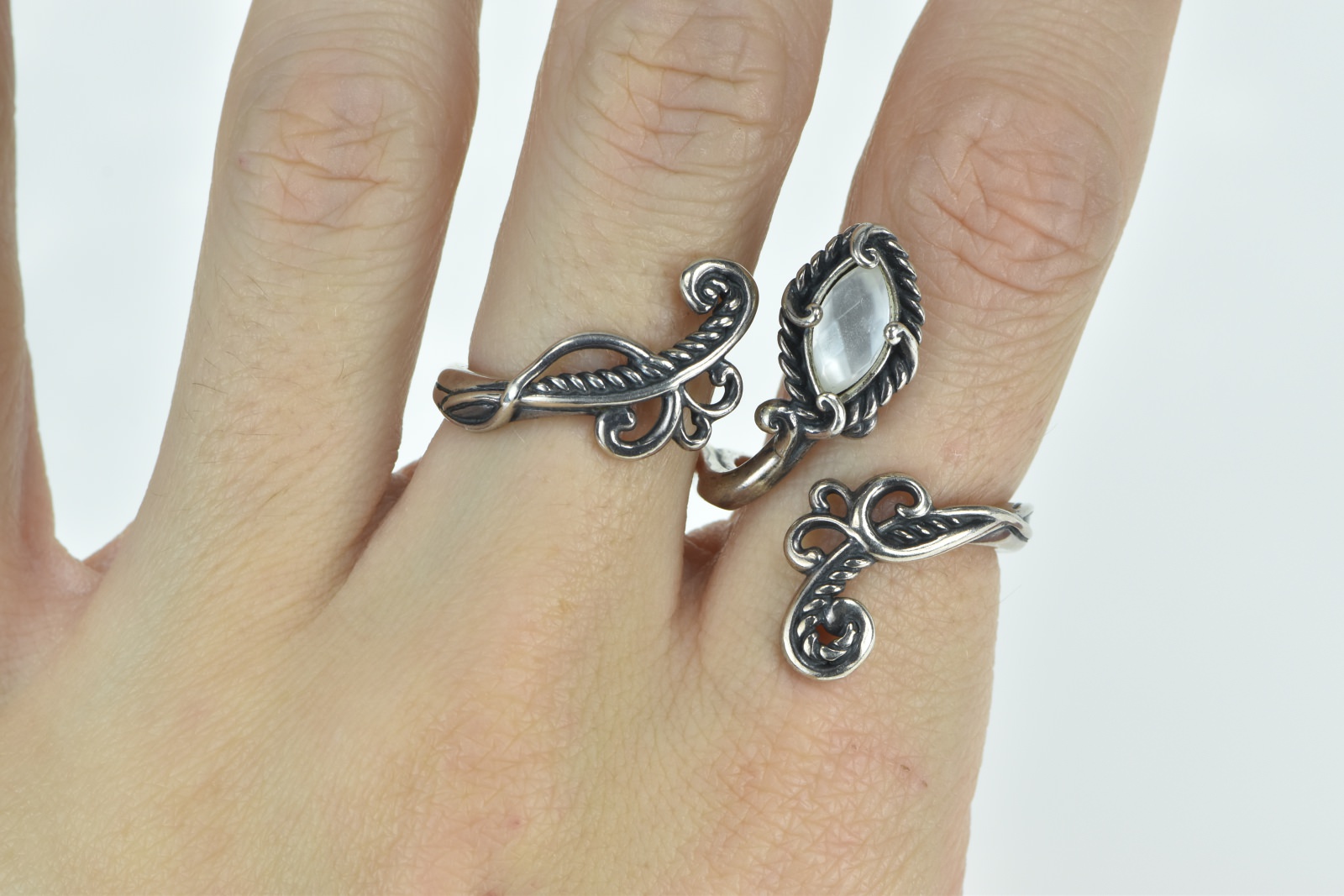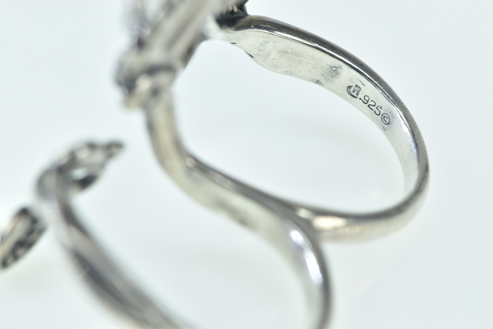 Sterling Silver Scroll Filigree Two Finger Wrap Vine Ring, Size 9.5/7.75