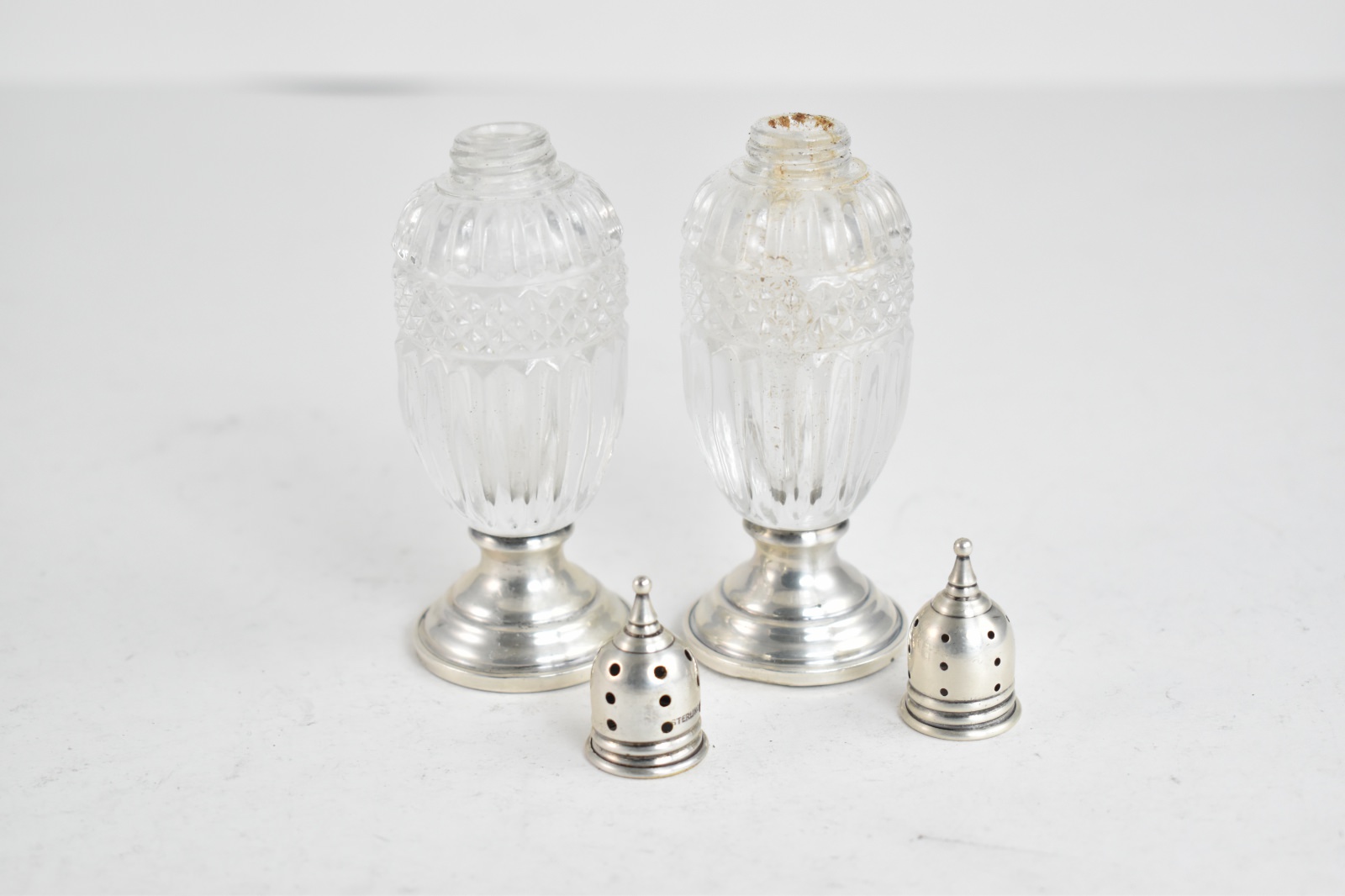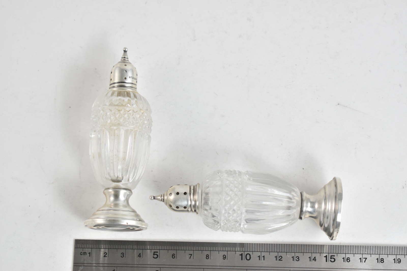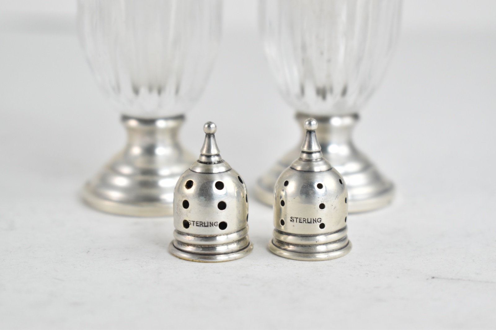 Item:  Sterling Silver Sheffield Co. Cut Crystal Salt & Pepper Shaker Set (2 pcs)