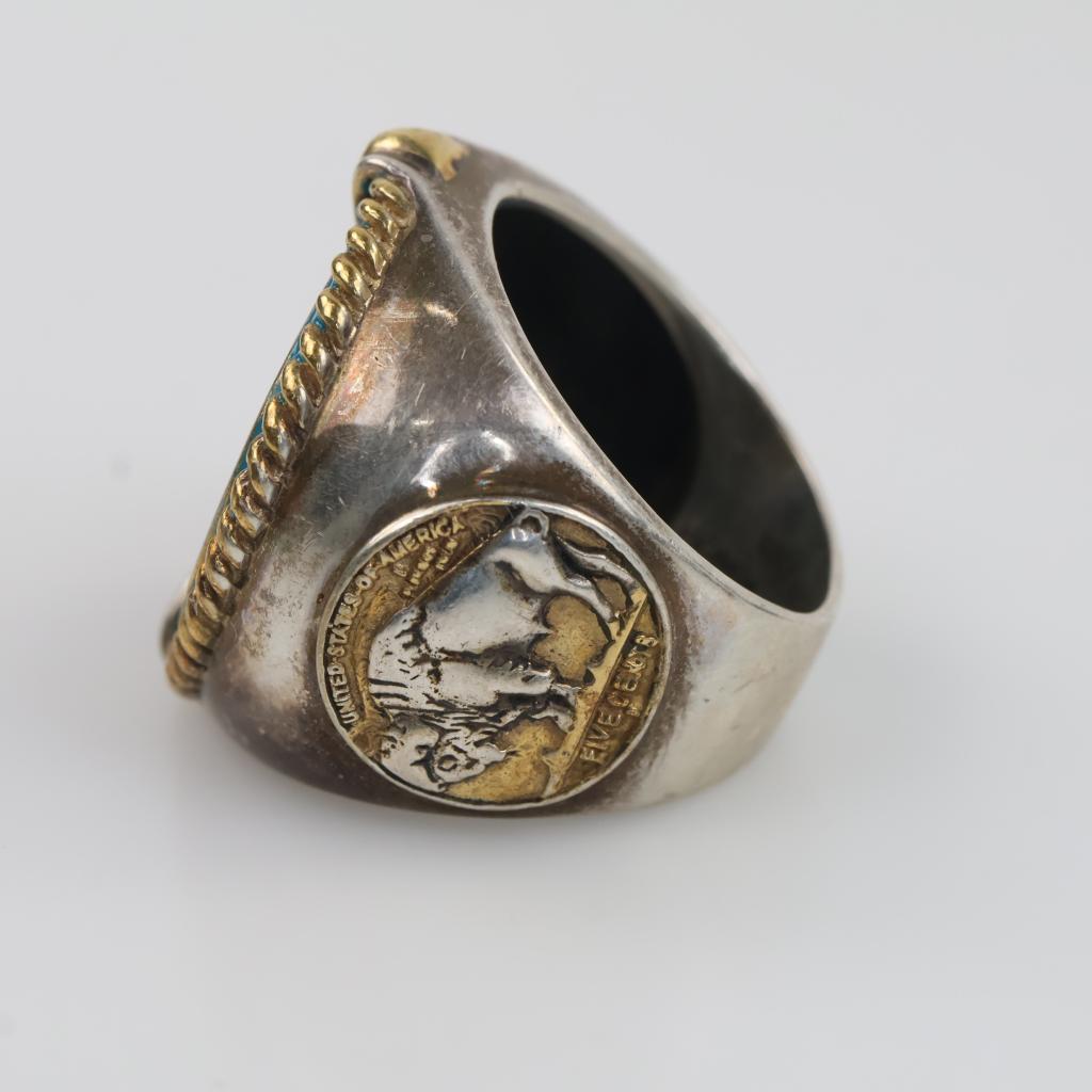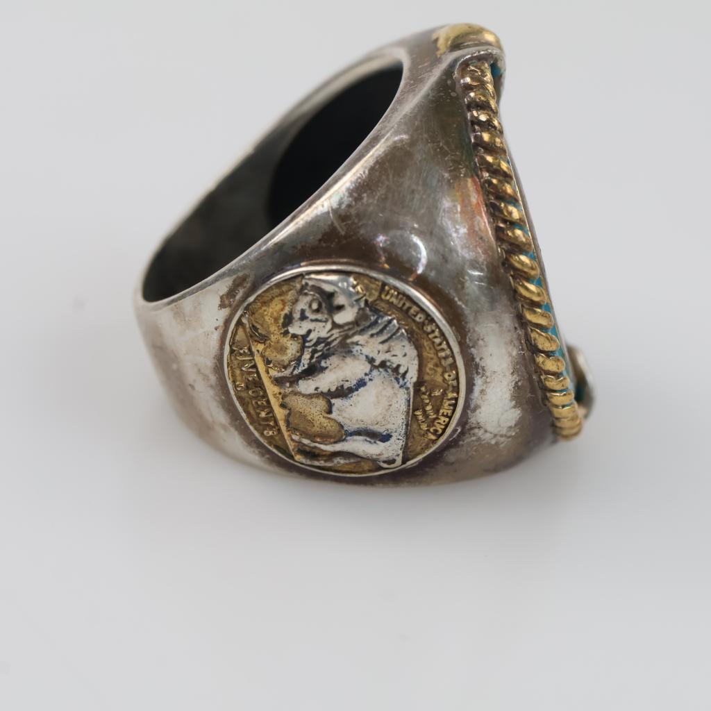Sterling Silver Signet Indian Head GP Nickel Ring
