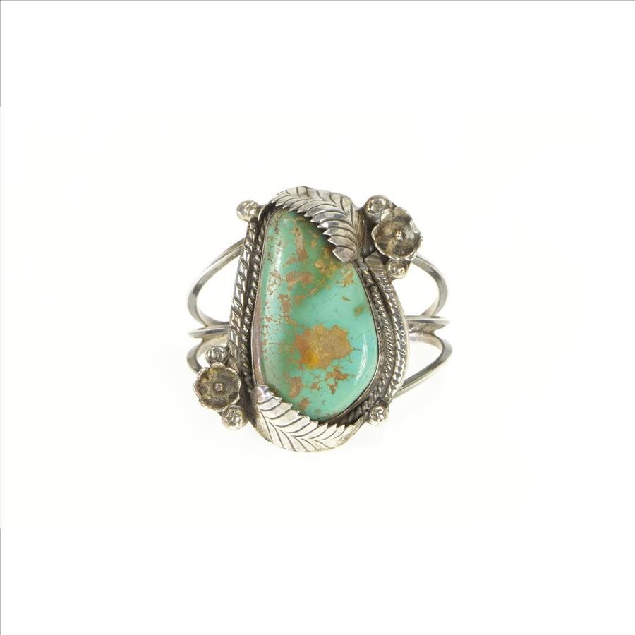 Item:  Sterling Silver Southwestern Turquoise Cabochon Leaf Cuff Bracelet 6.25"