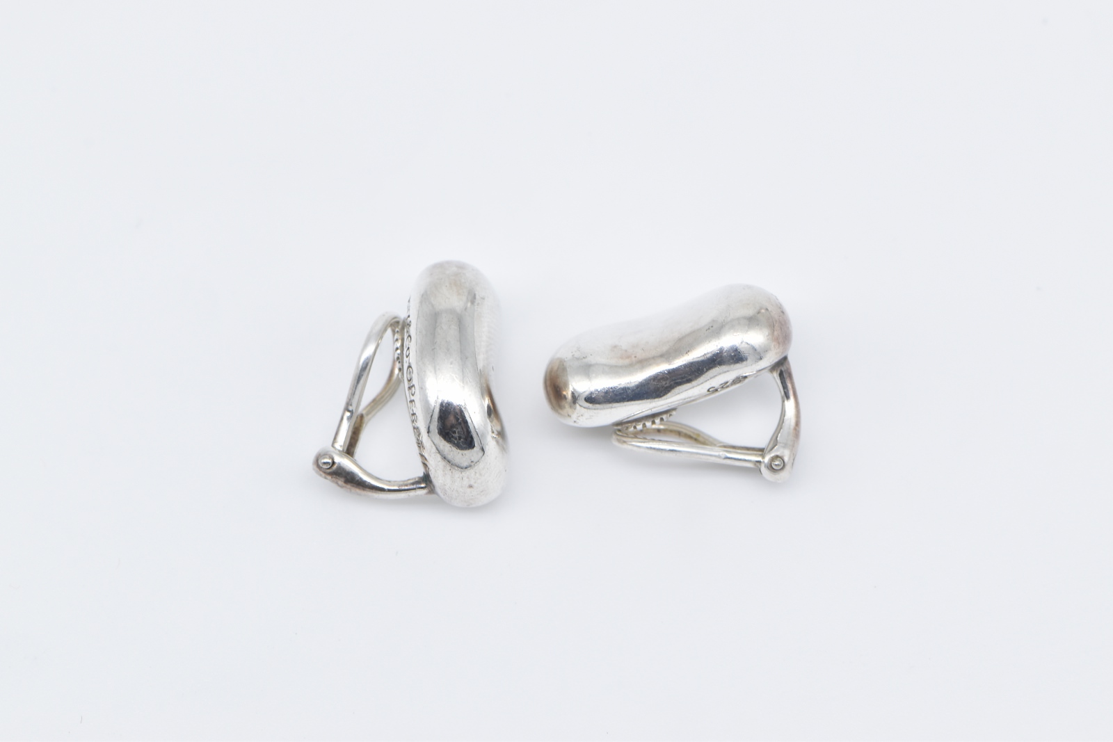 Sterling Silver Tiffany & Co Elsa Peretti Bean Clip Back Earrings