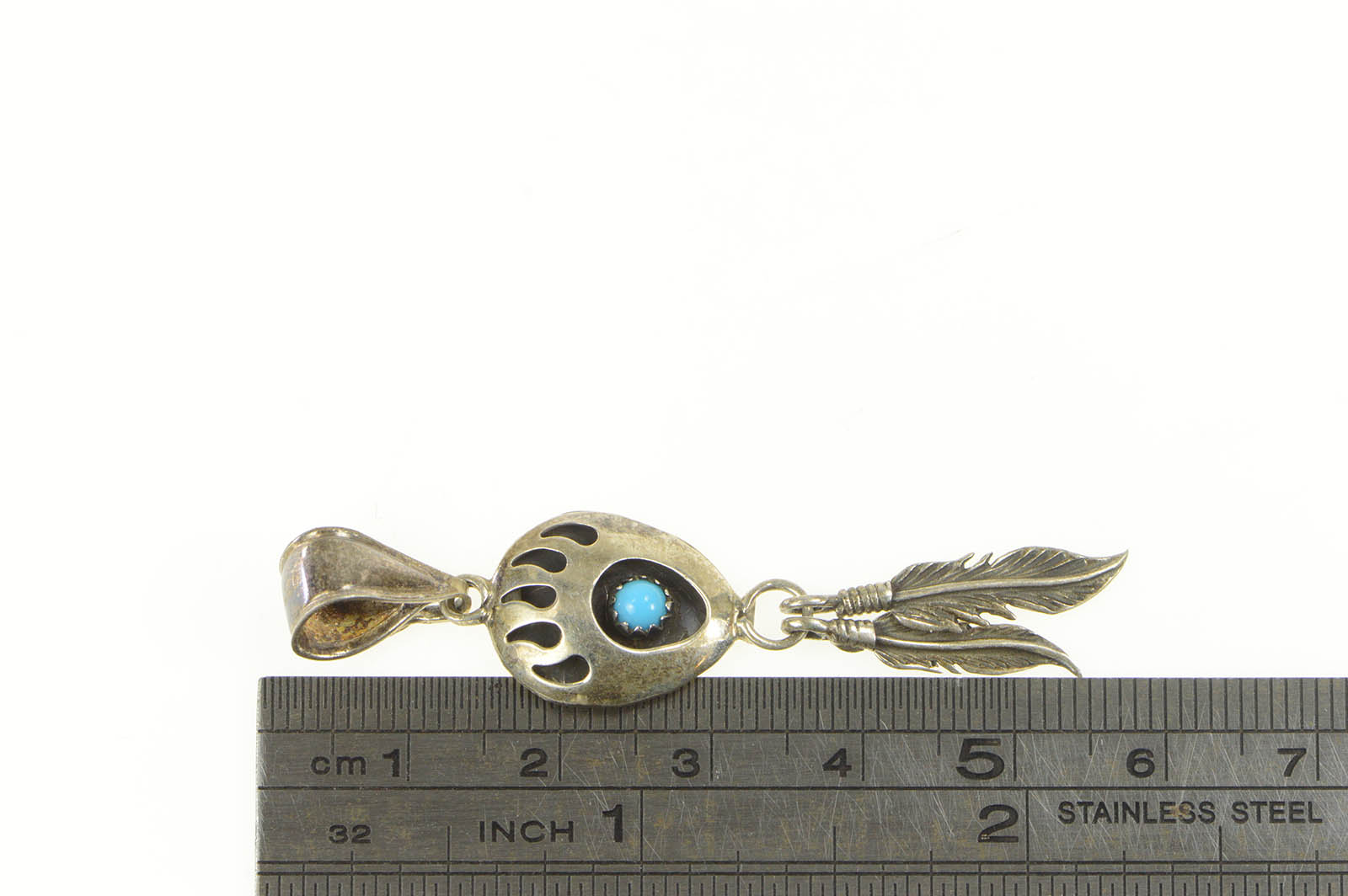 Sterling Silver Turquoise Native American Navajo Feather Pendant