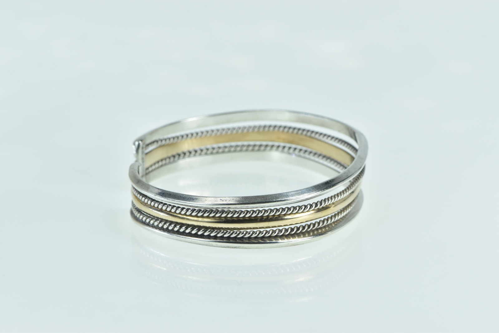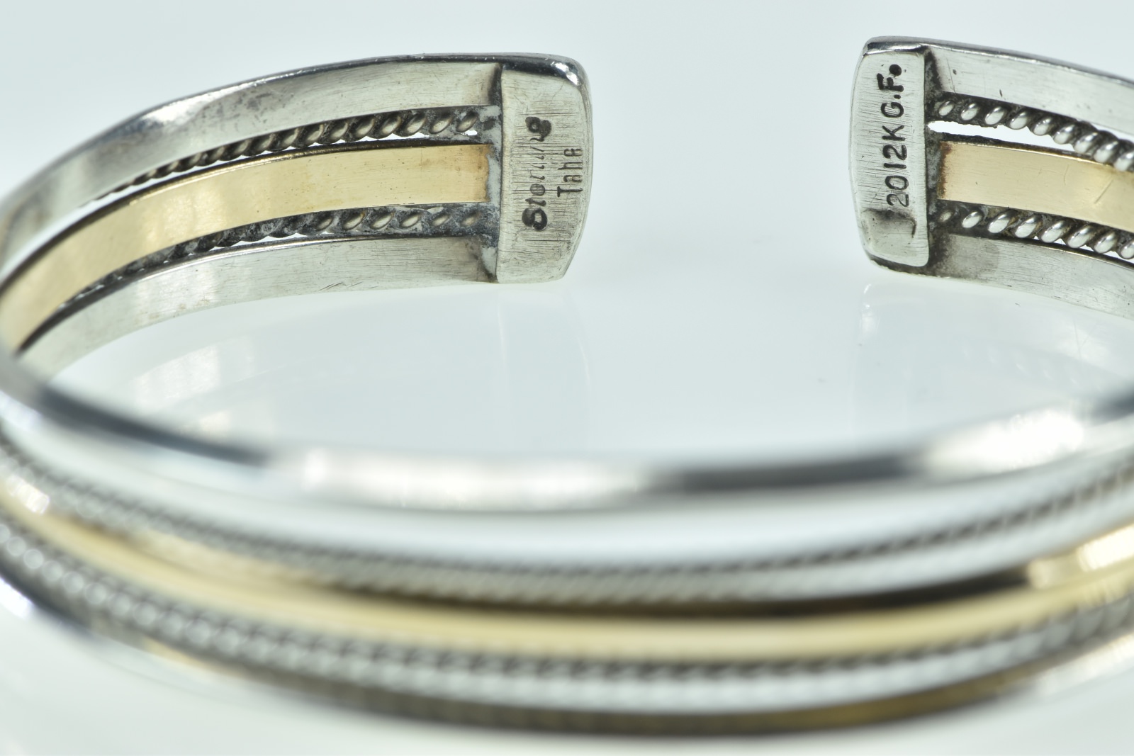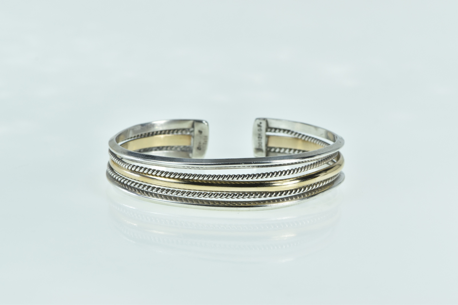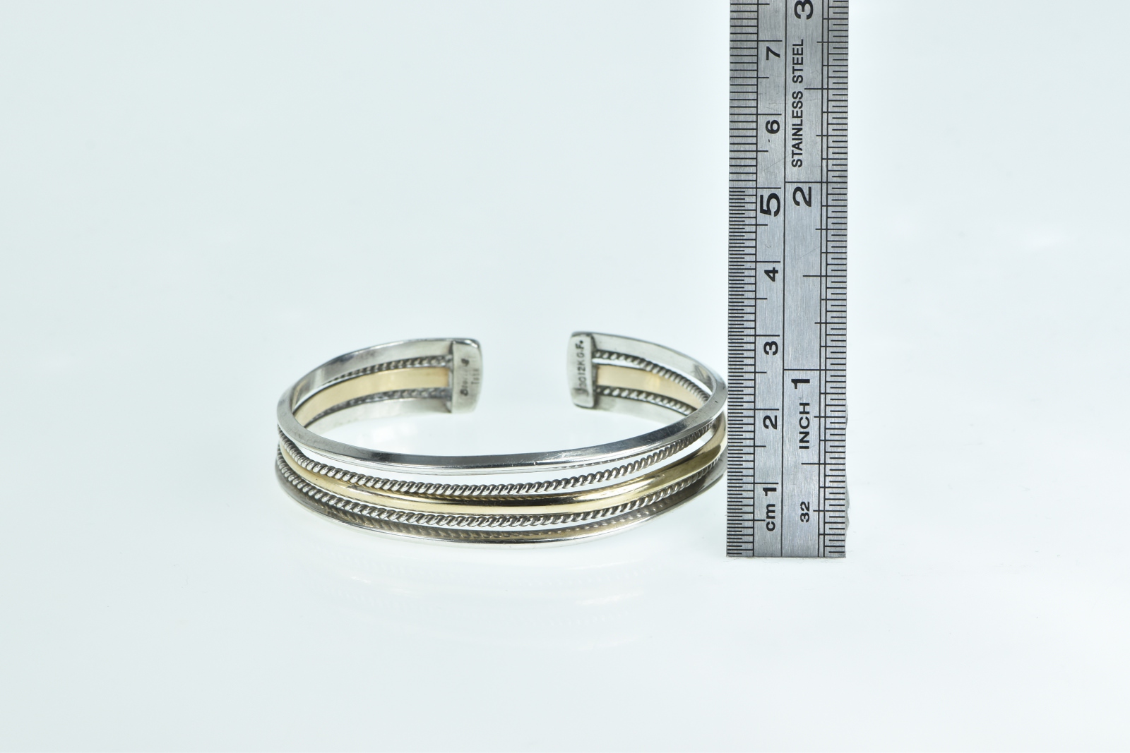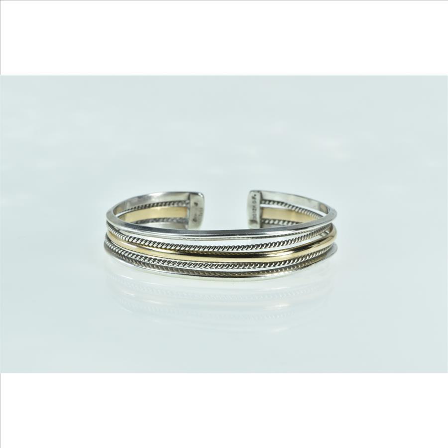 Item:  Sterling Silver Two Tone Layered Gold Filled Accent Cuff Bracelet 6.75"