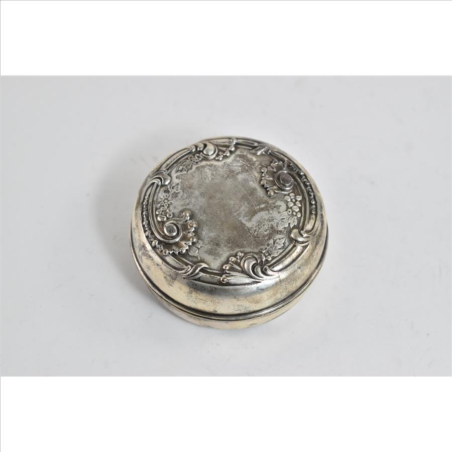 Item:  Sterling Silver Victorian Repousse Scroll Trinket Jewelry Box