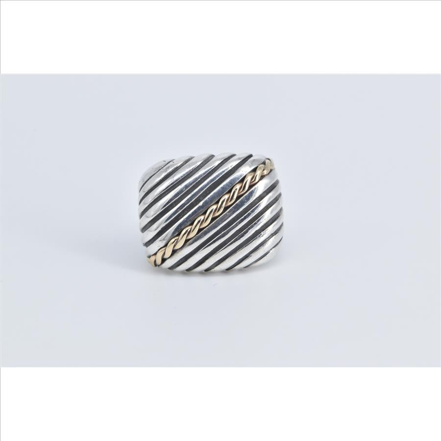 Item:  Sterling Silver Vintage 14k Gold Striped Squared Statement Ring, Size 4.25