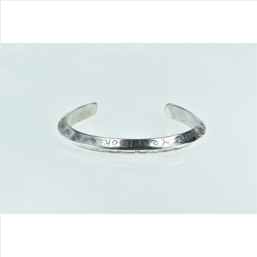 Item:  Sterling Silver Vintage Stamped Yearbook Engraved Cuff Bracelet 6.75"