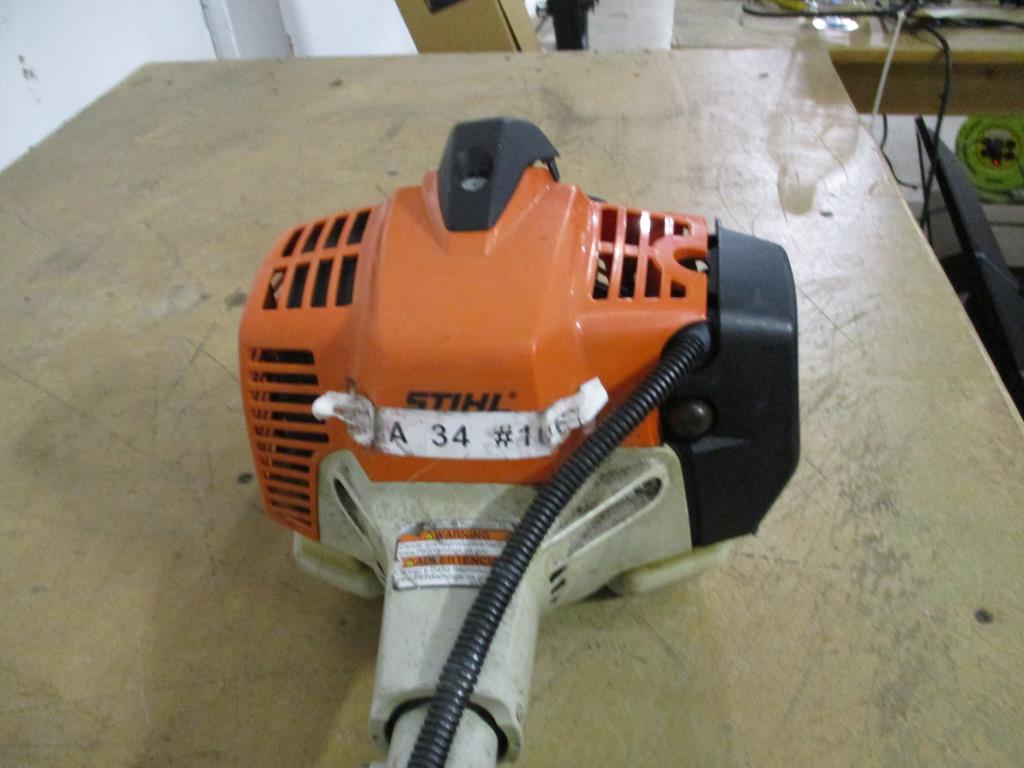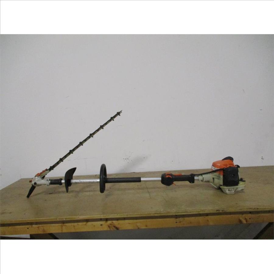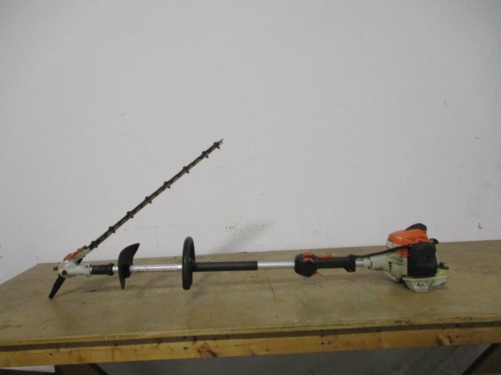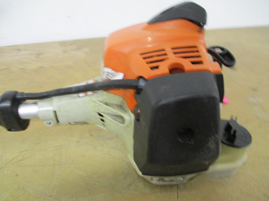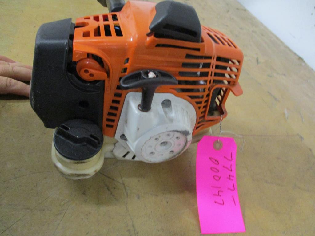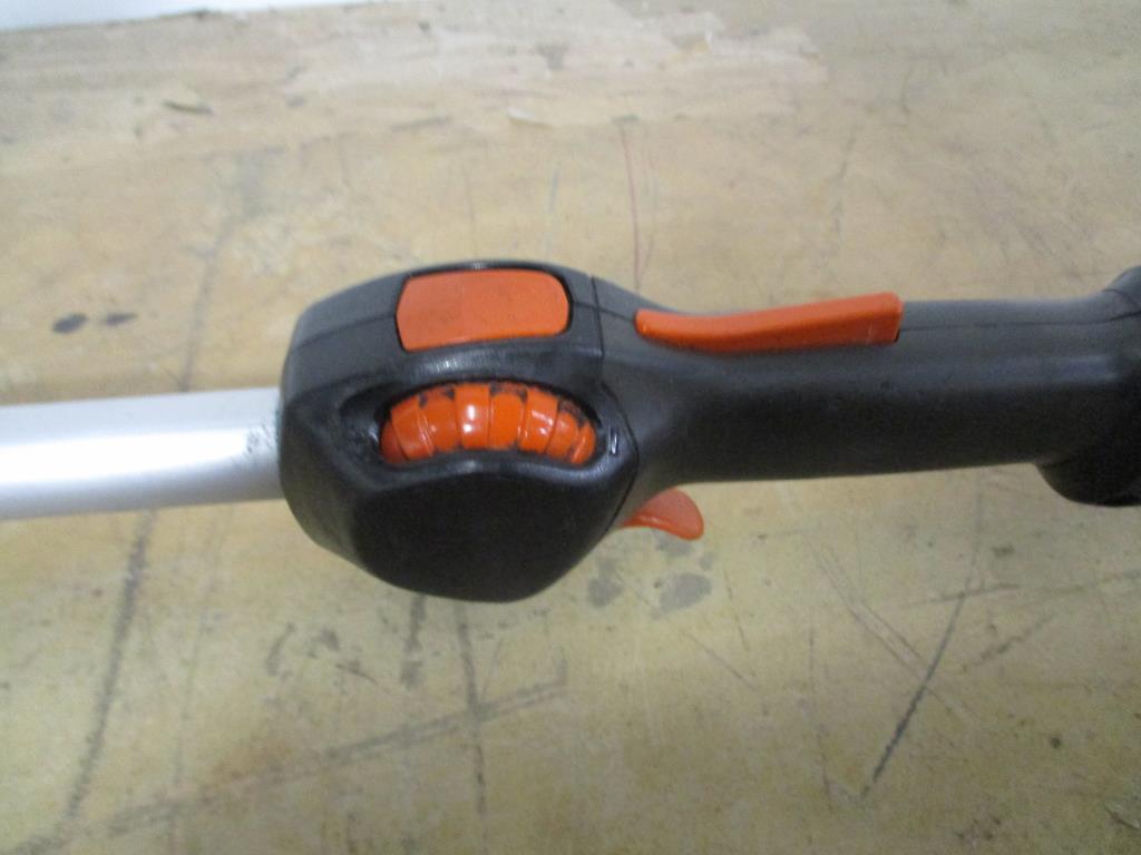 • Item info: gas powered, pull cord start, trigger throttle on handle, kill switch, + and - speed knob, cover, blade is foldable, straight bar.