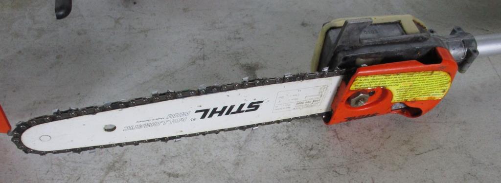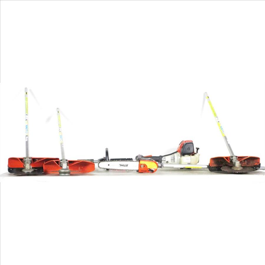 Get a great deal with this online auction presented by PropertyRoom.com on behalf of a law enforcement or public agency client. Brand:Stihl Model: KM11OR Color: Orange and black Gas powered, Pull cord to start, 4Attachments edger, 2 saw blades, cut saw, weed eater, kill switch, trigger with throttle on handle - Measurements: 78"