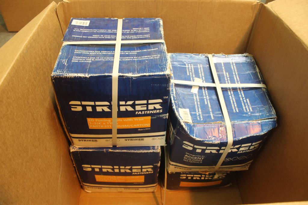 Get a great deal with this online auction for a nails presented by Property Room on behalf of a law enforcement or public agency client. - Striker Fasteners Eg Furring Nails With Wad 11 Gallons - 4 Boxes