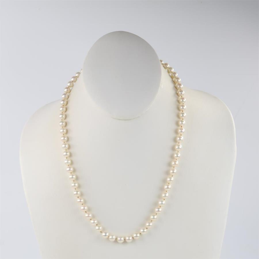 String Of Pearls Necklace With 14kt Gold Diamond Accented Clasp