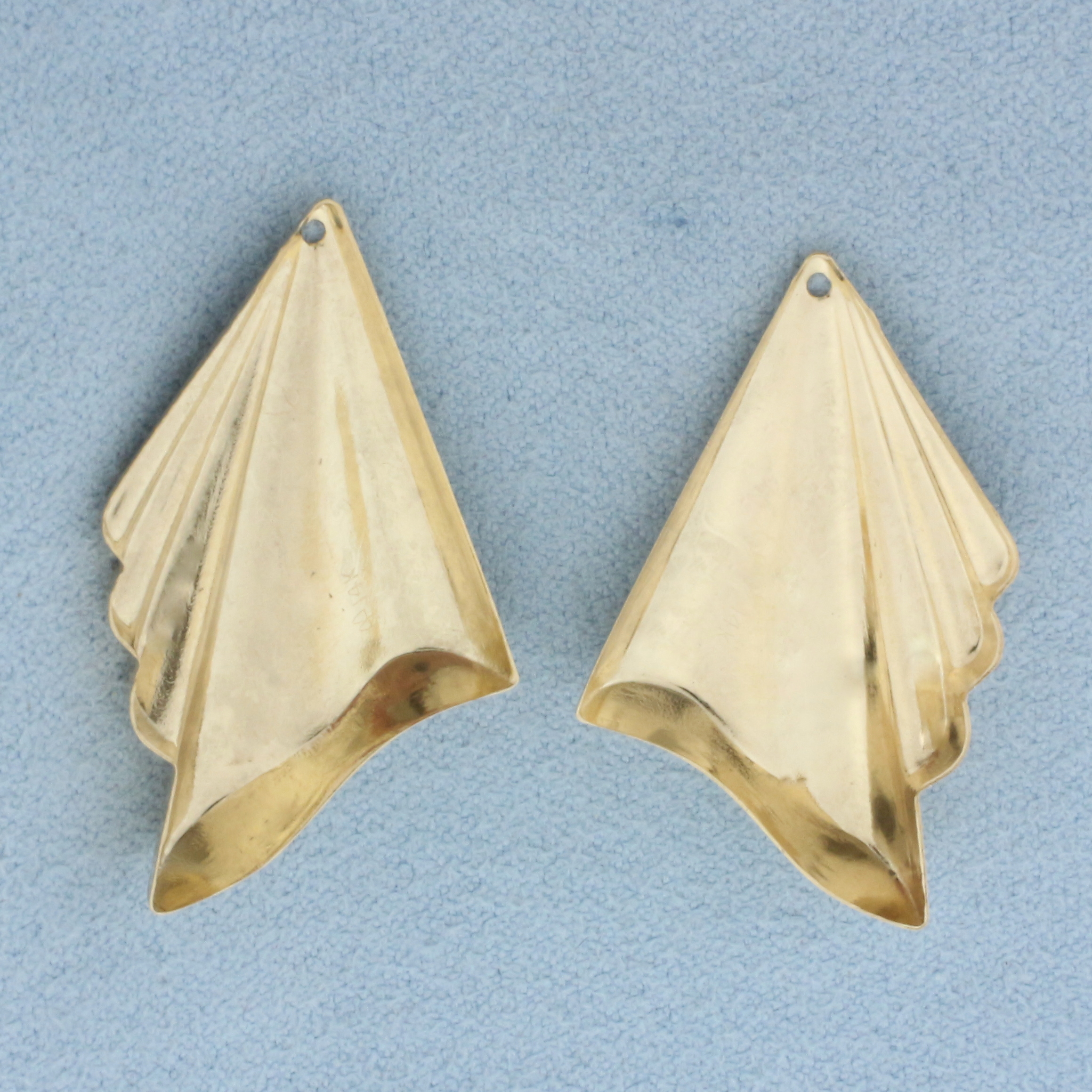 In 14k yellow gold. 1 1/4 inches long and 7/8 inches wide. Designed to slide onto stud earring posts for new look to stud earrings. 2.7g.
