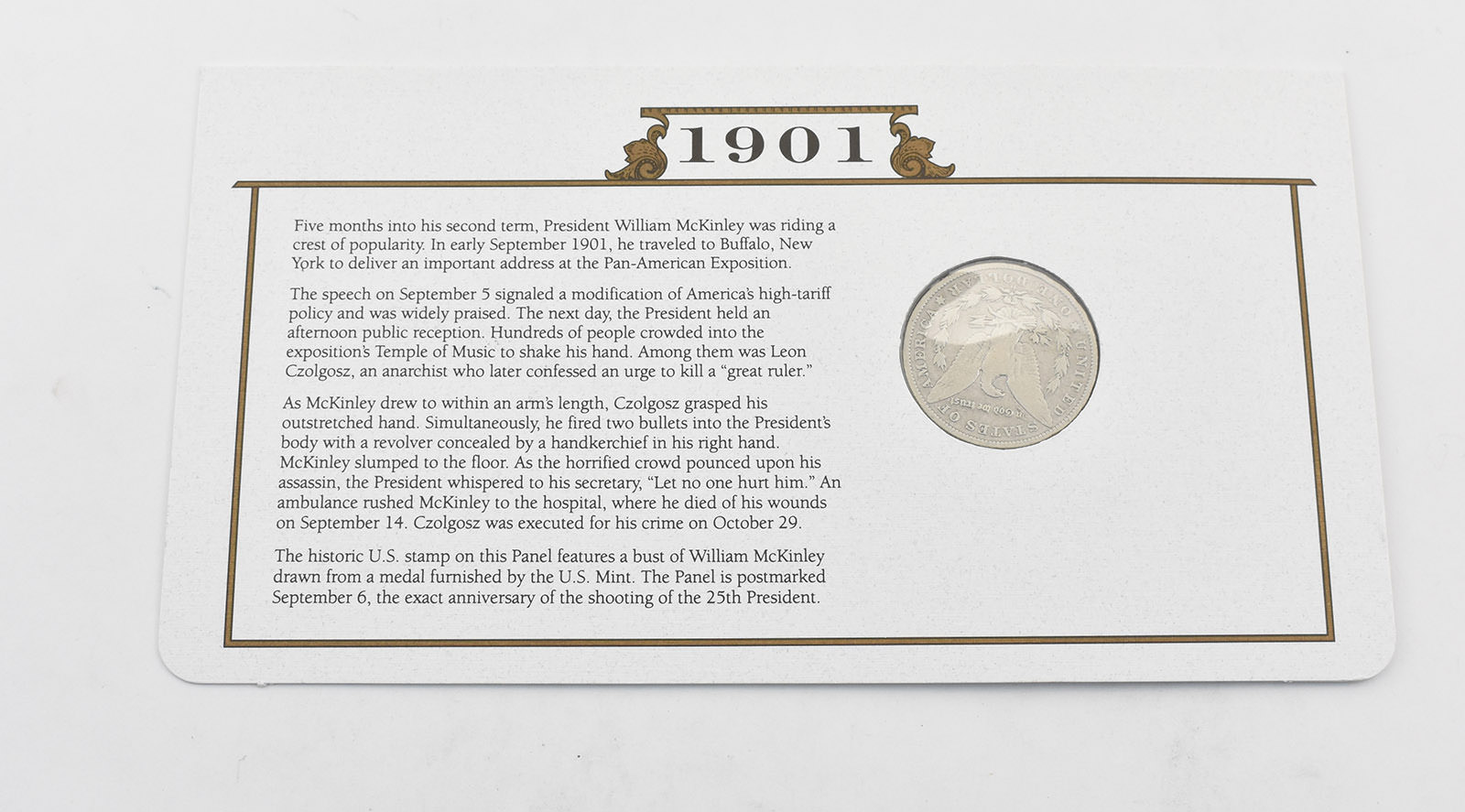 Stunning 1901 Morgan Silver Dollar Mounted w/ Display Cover