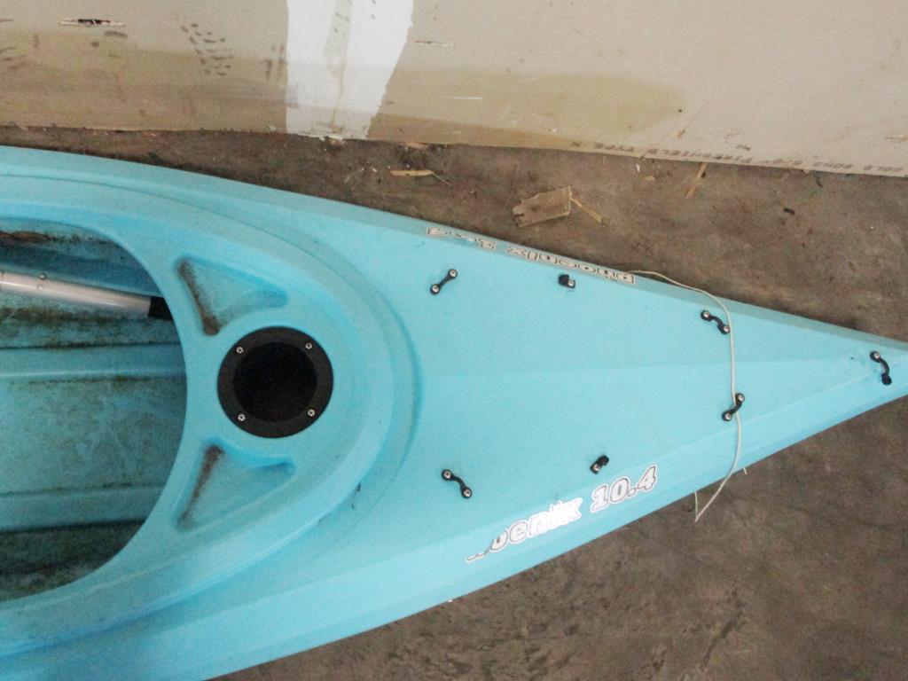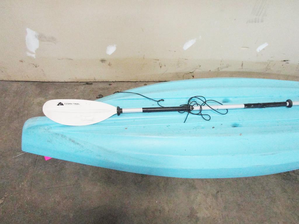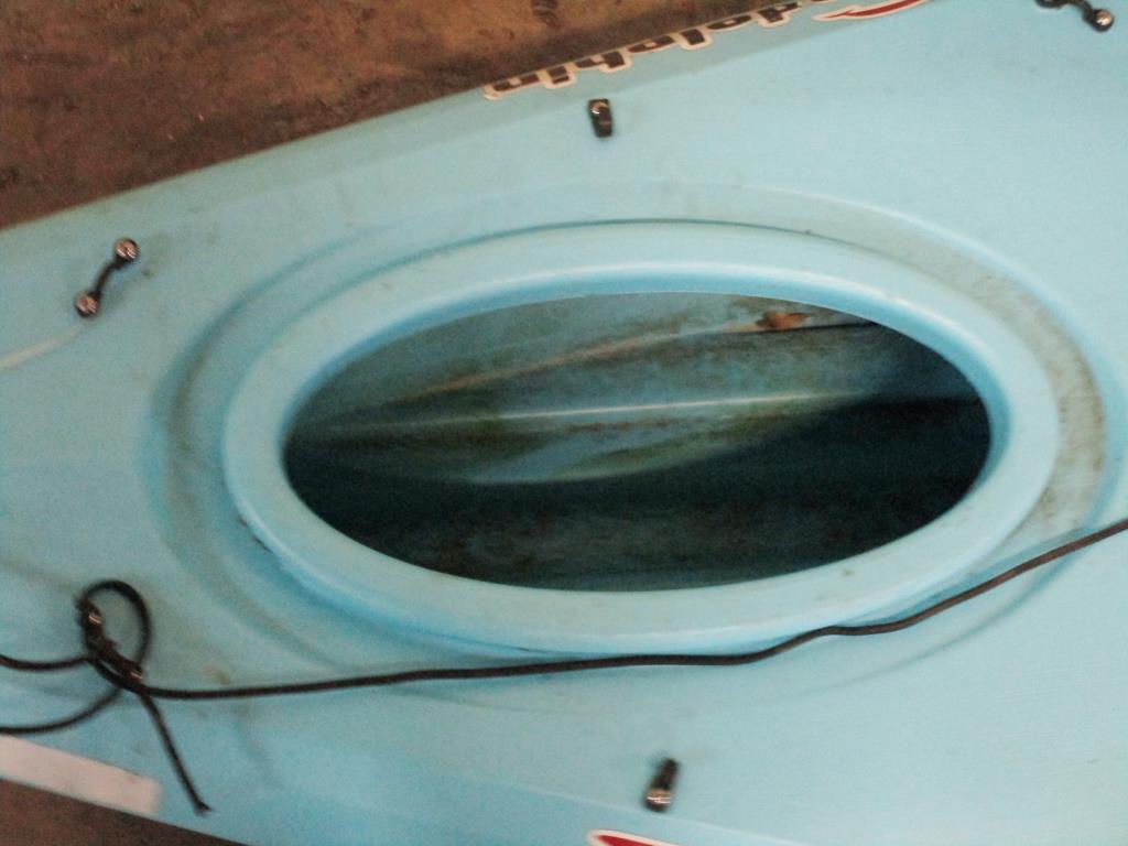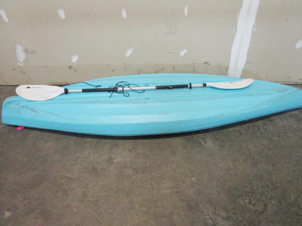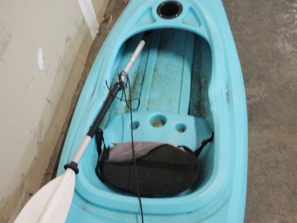 - single person, dual paddle, storage in back, carrying strap for easy mobility missing on one side.