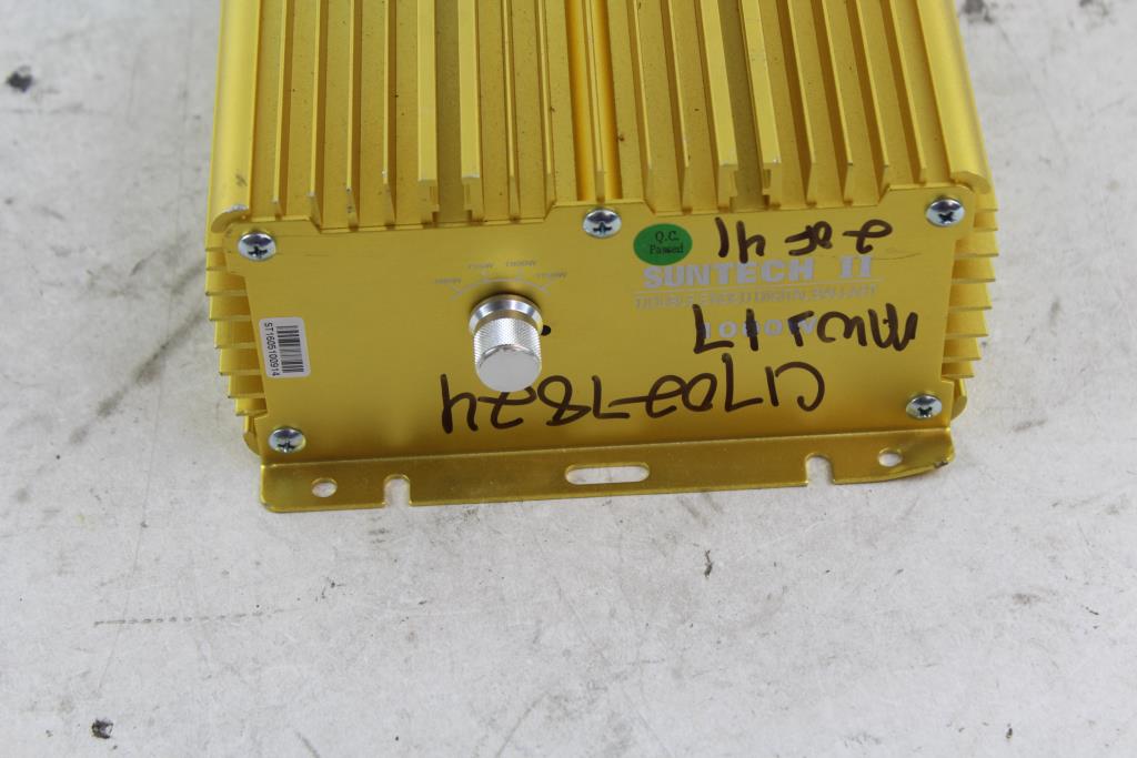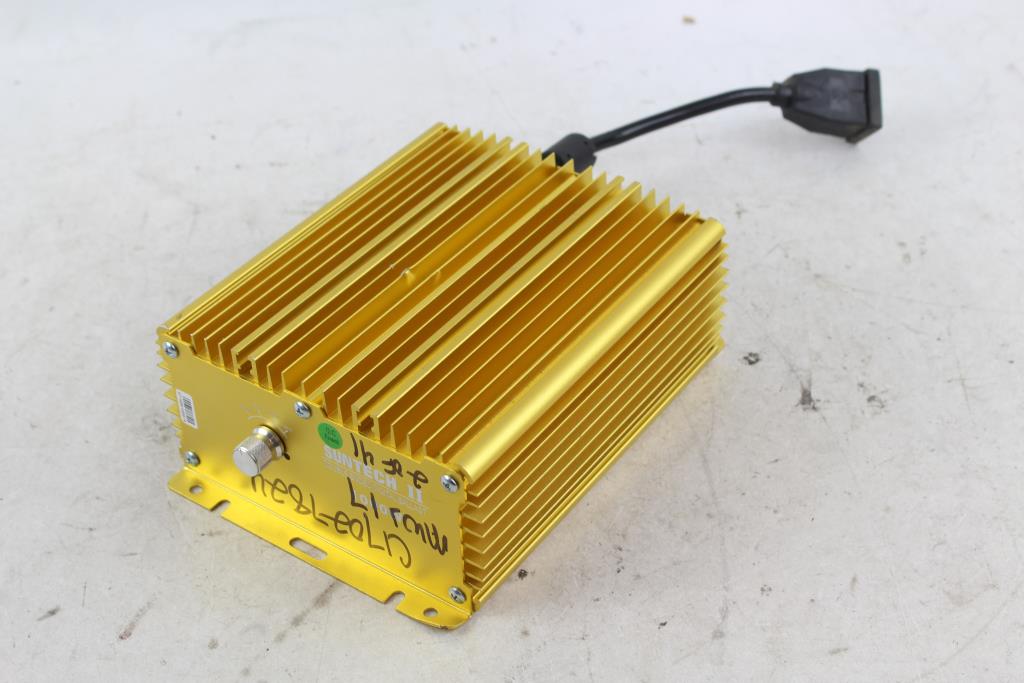 Get a great deal with this online auction for a ballast presented by Property Room on behalf of a law enforcement or public agency client. Model: Suntech II Double-ended Digital Ballast Watts: 1000W Type: Not Listed 240V / 50/60Hz / 4.58A Measurements: aprox. 8" x 7" x 3 5/8" Cosmetic Condition: good to fair condition, visibly worn, may have scratches, scrapes and be dirty. Mounting brackets may be bent / warped. May have marker writing on the item. Parts/ pieces may be missing. Power Cord Condition: Not cut/ N/A - Testing Results: Item is untested due to lack of proper testing equipment.